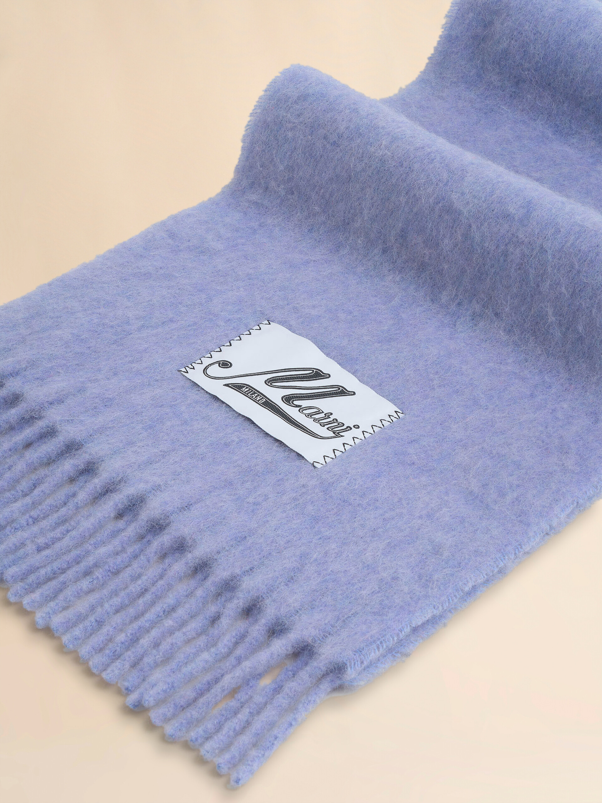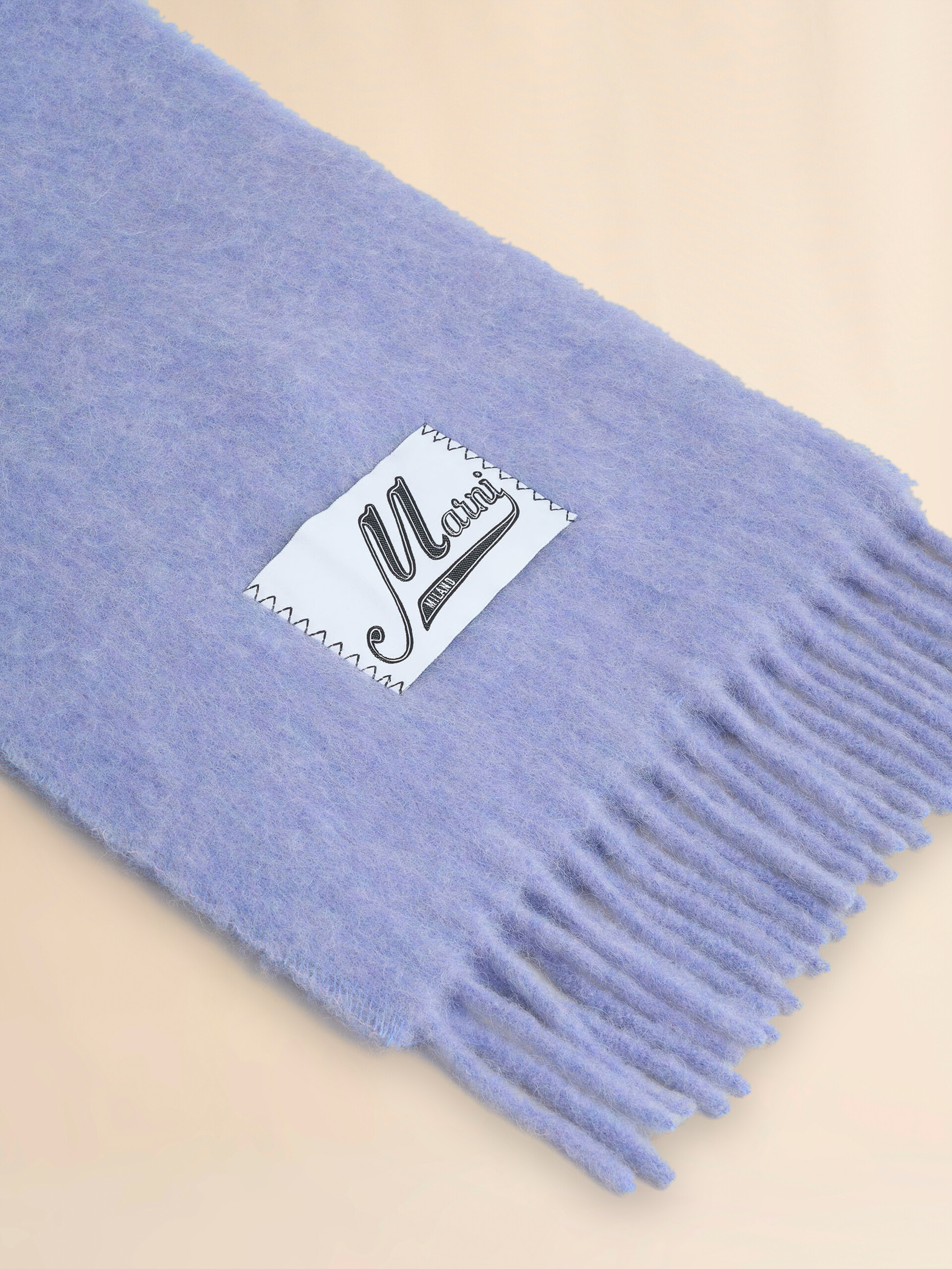 Schal aus gebürstetem Alpaka mit Fransenkanten. Veredelt mit einem Maxi-Etikett aus Satin mit kursivem Marni-Logo. Made in Italy