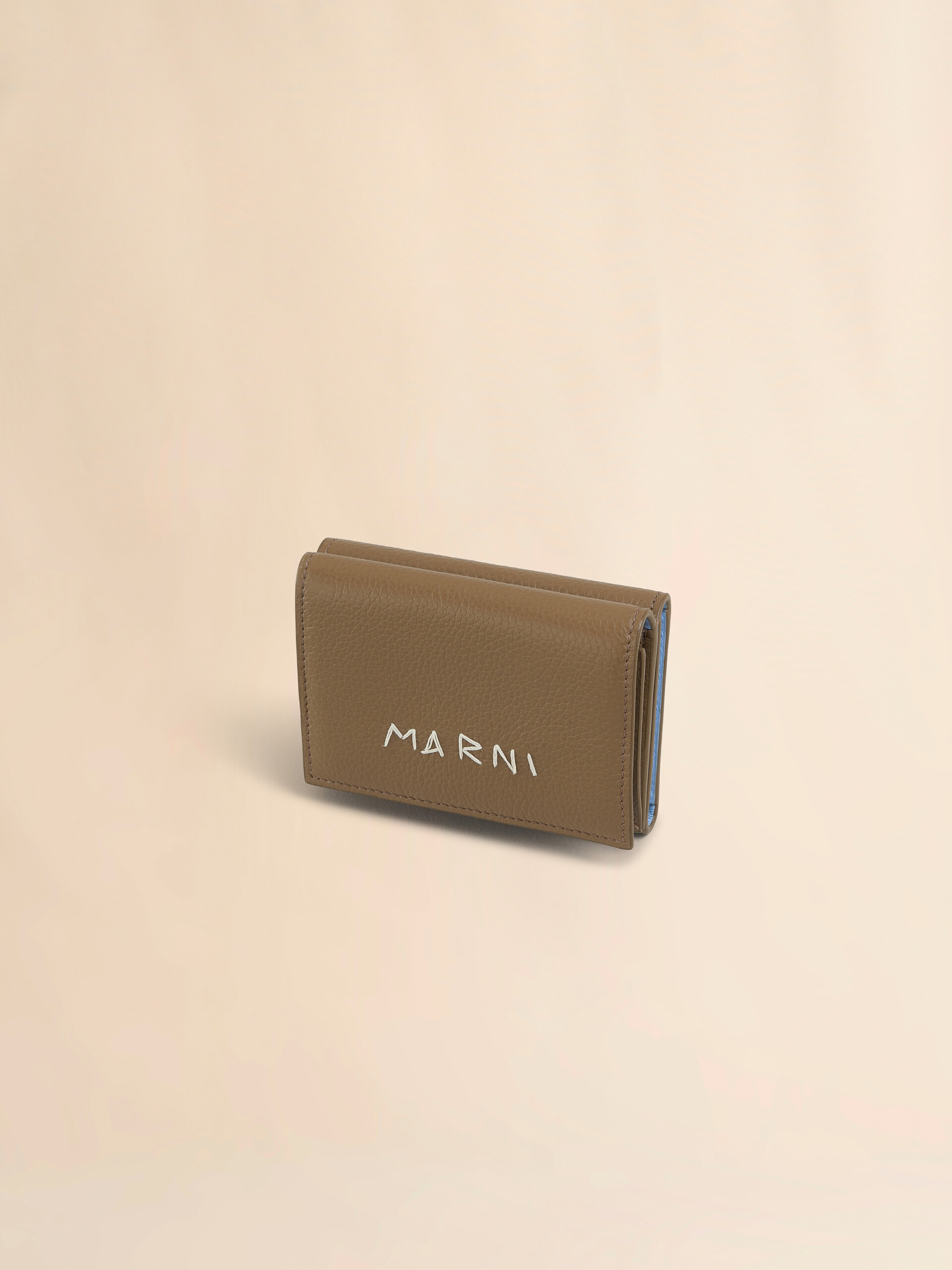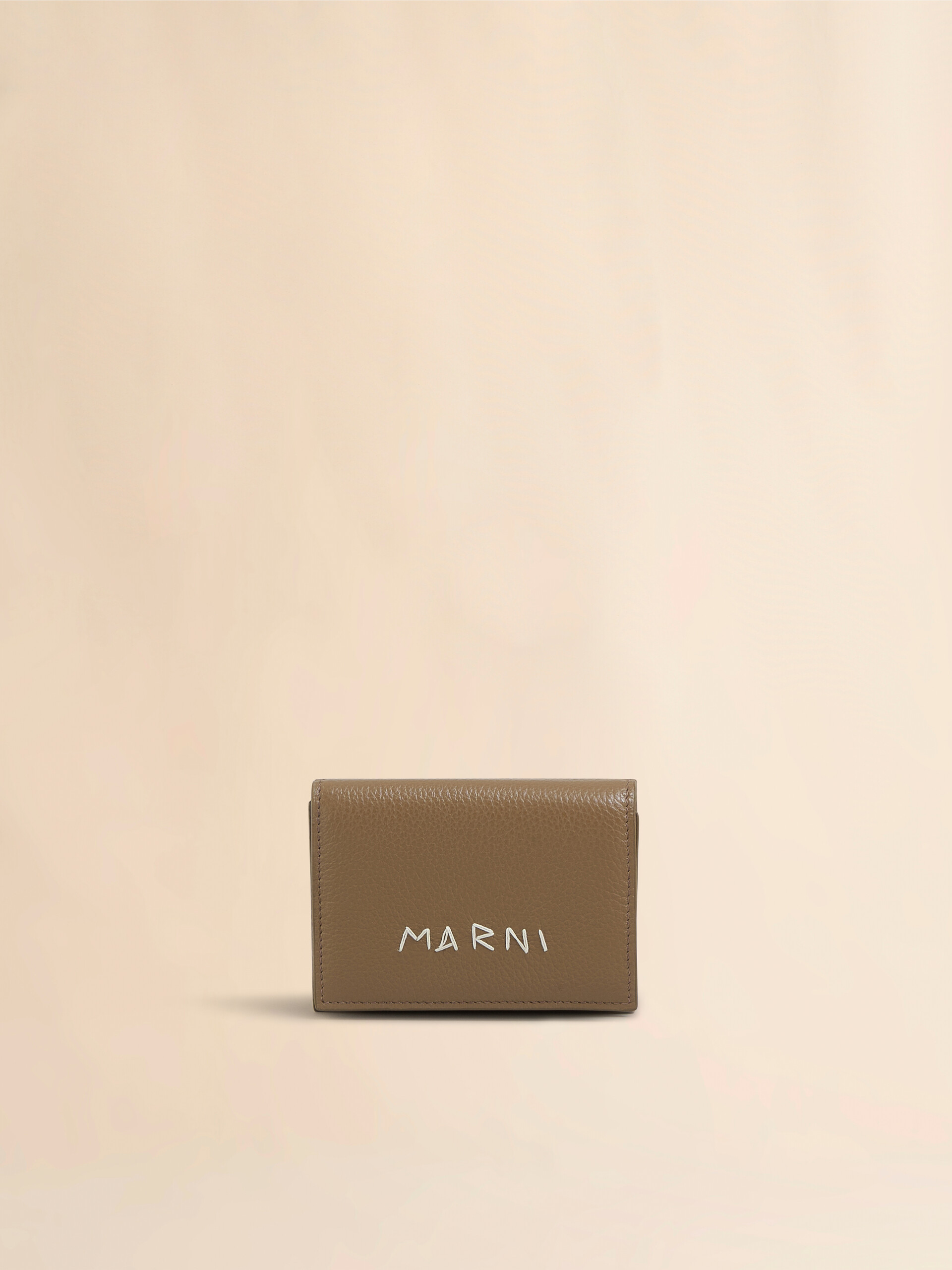 Braune Tri-Fold-Brieftasche aus Leder mit Marni Mending Stickerei