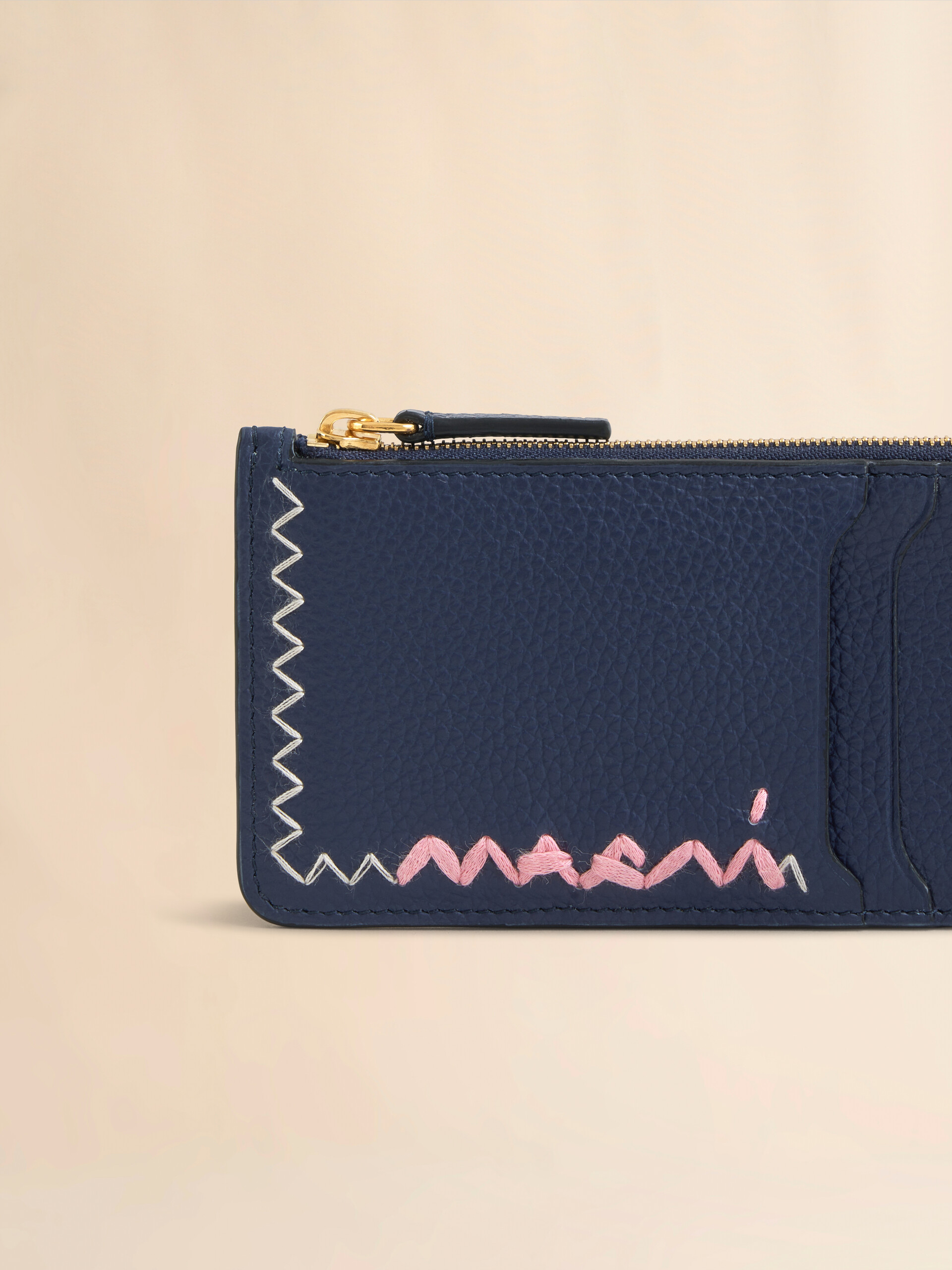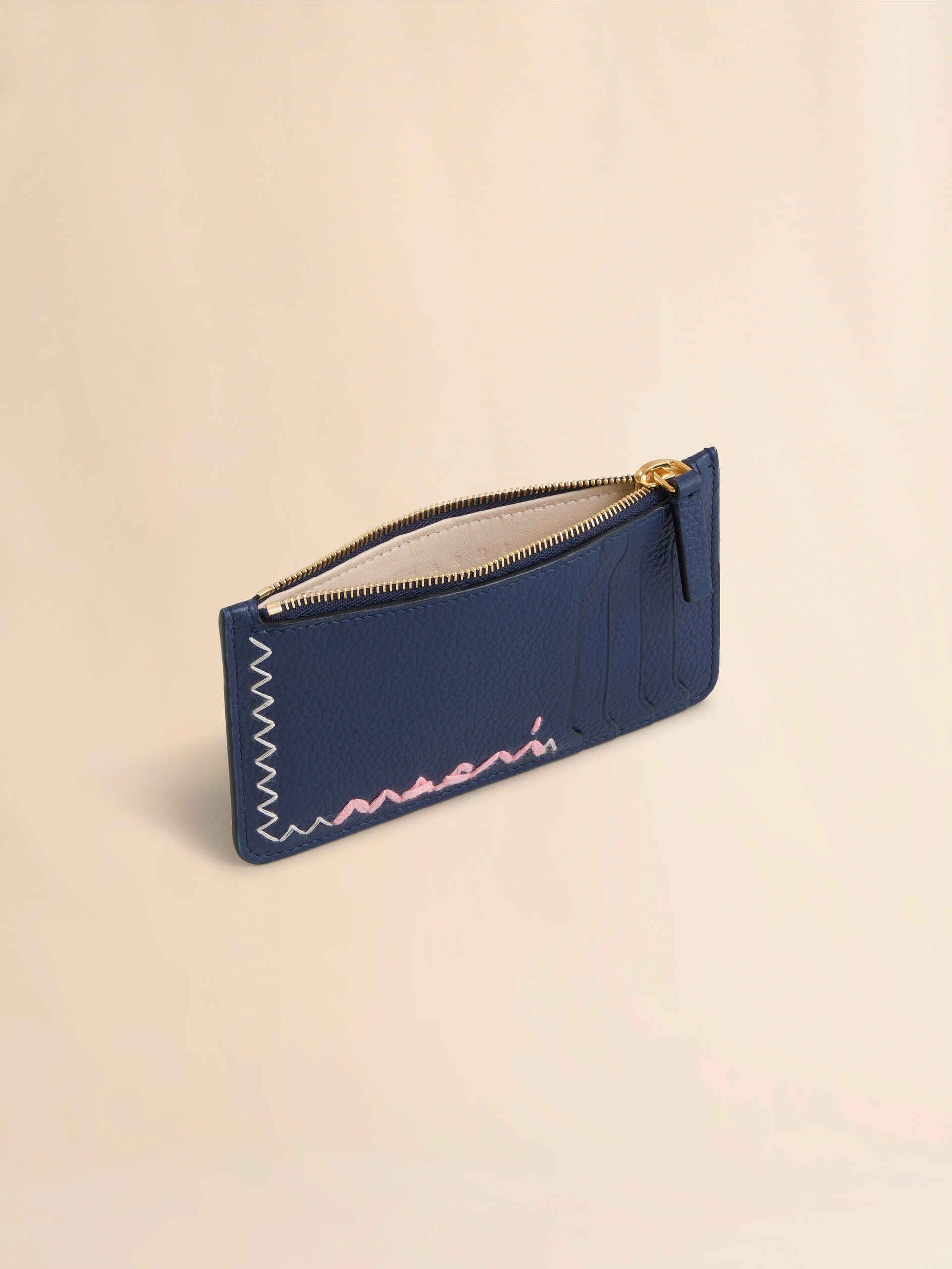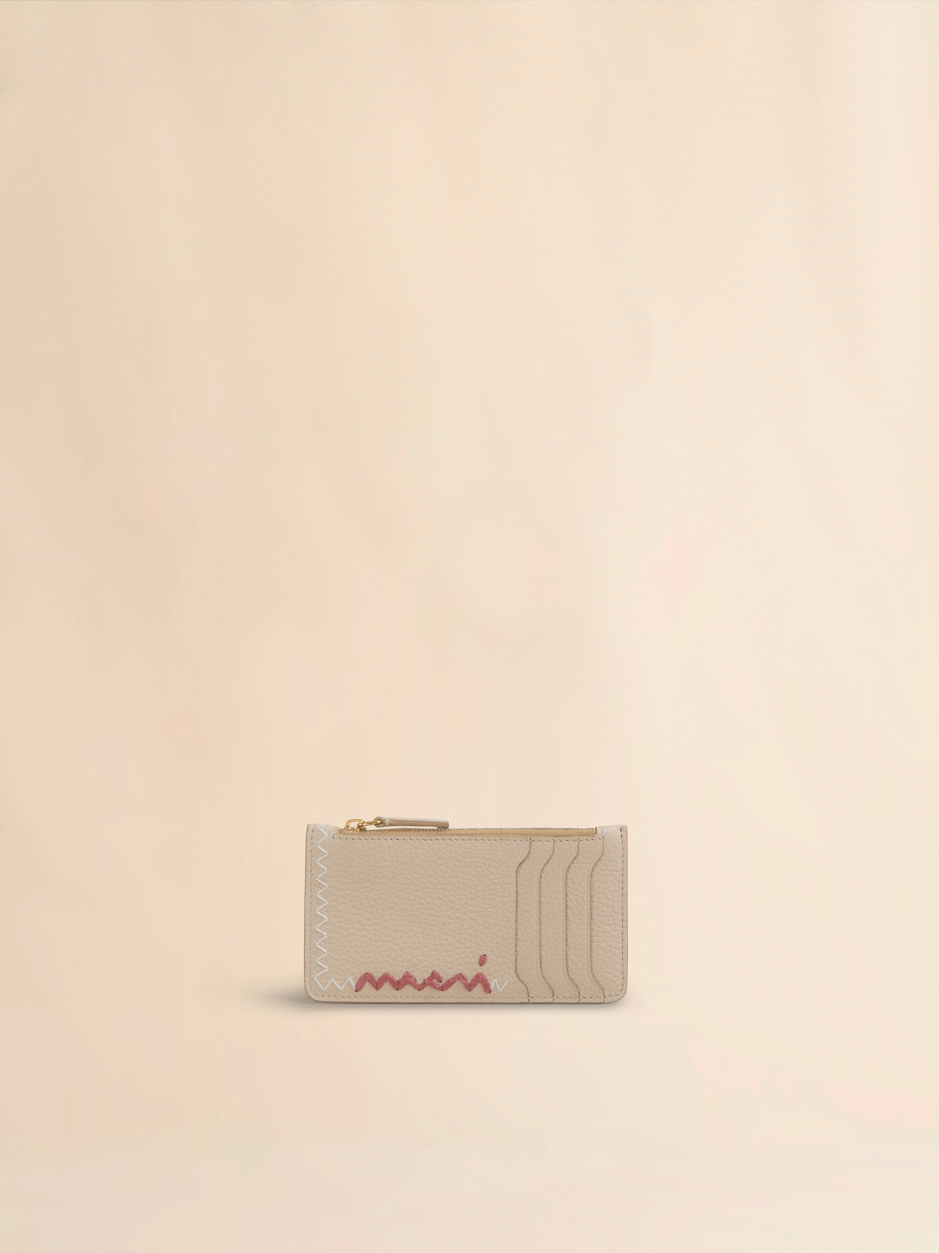 Kartenetui aus Bottalato-Kalbsleder. Vier Kartenfächer. Zentrales Fach mit Reißverschluss. Verziert mit Zick-Zack-Nähten und kontrastierender, von Hand gefertigter Marni Symbol Stickerei auf der Vorderseite. Made in Italy