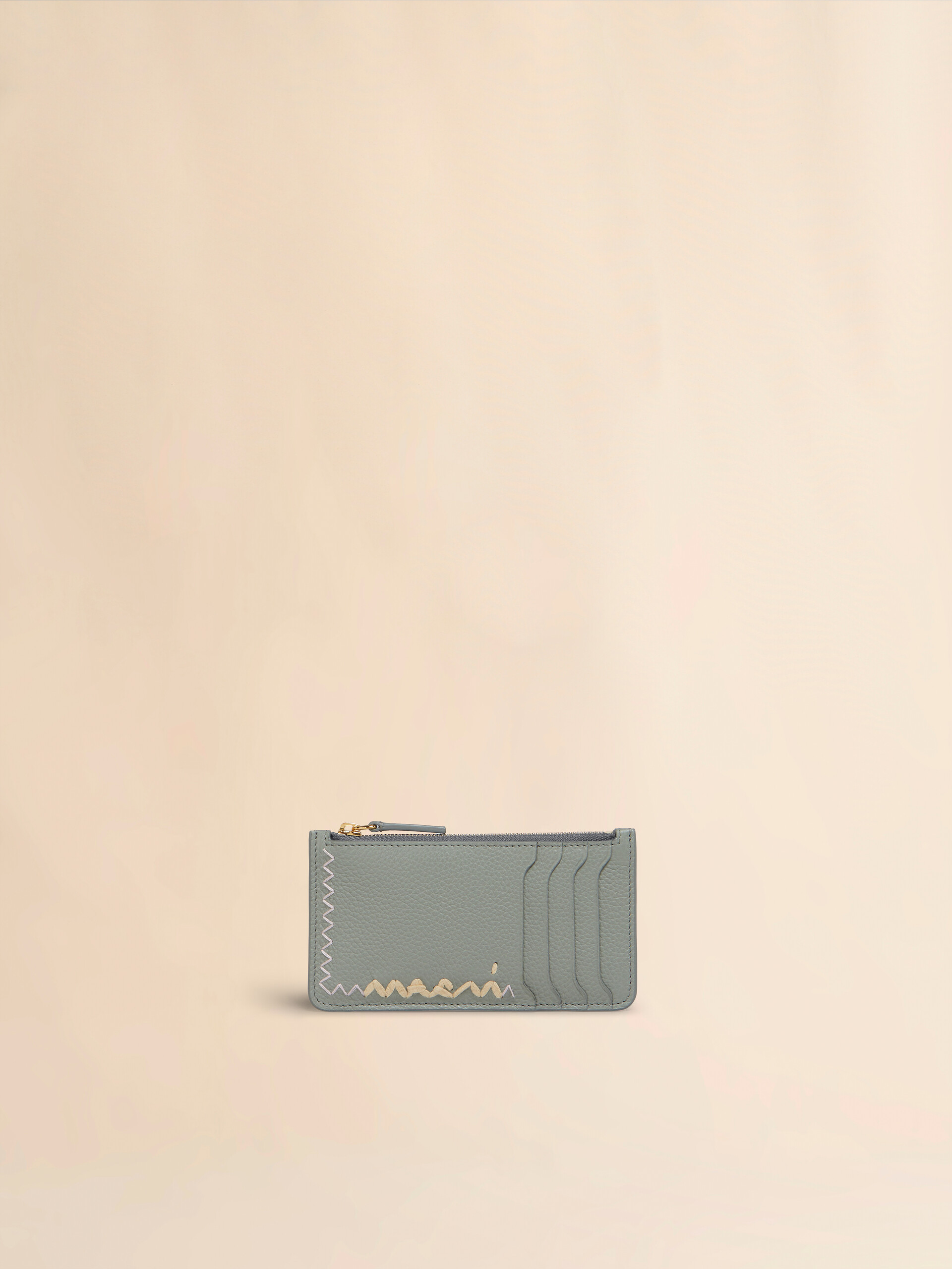 Kartenetui aus grauem Leder mit Marni Symbol Stickerei