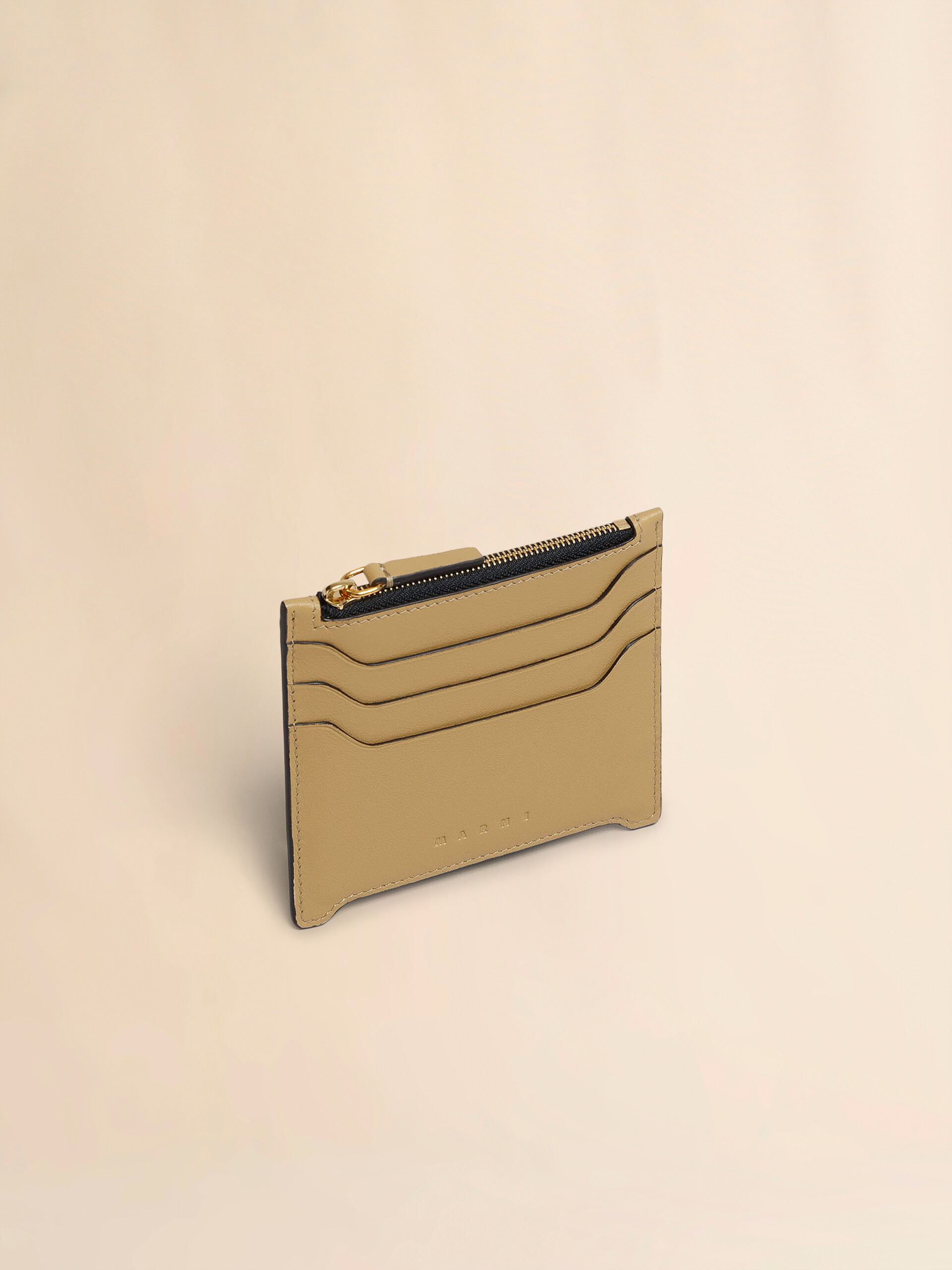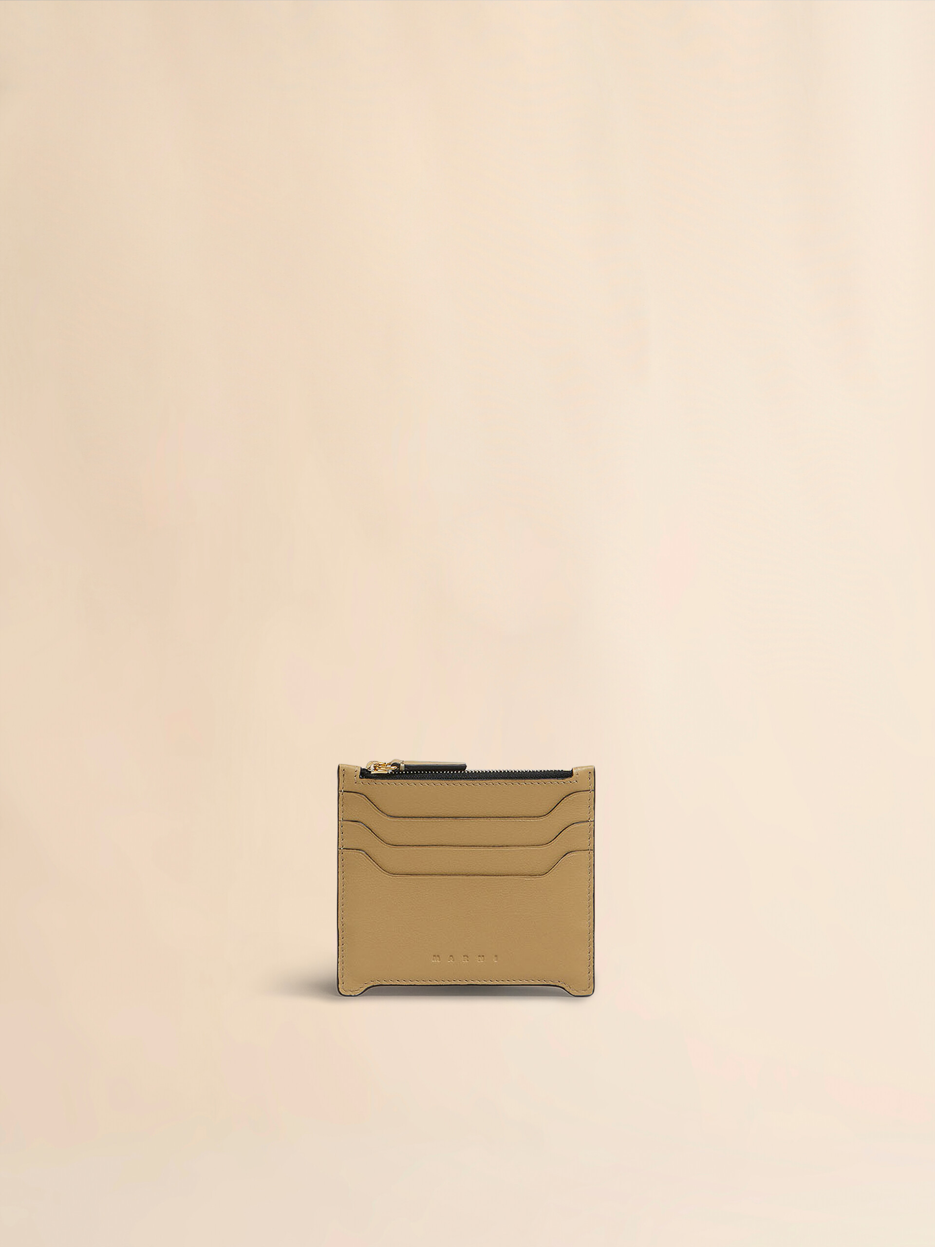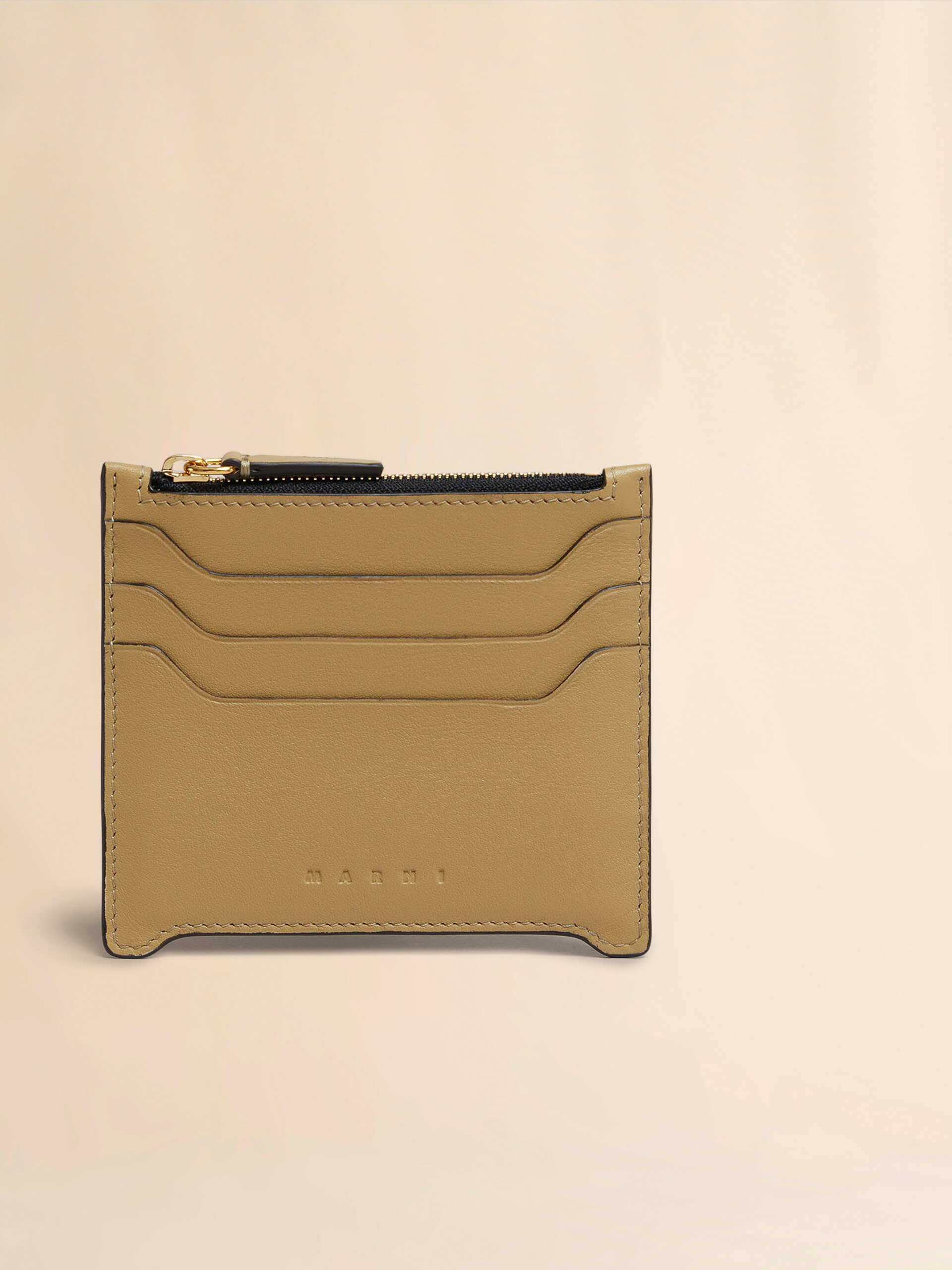 Kartenetui Trunkaroo aus glattem Kalbsleder. Drei Kartensteckfächer. Zentrales Reißverschlussfach. Eingeprägtes Marni-Logo auf der Vorderseite. Made in Italy