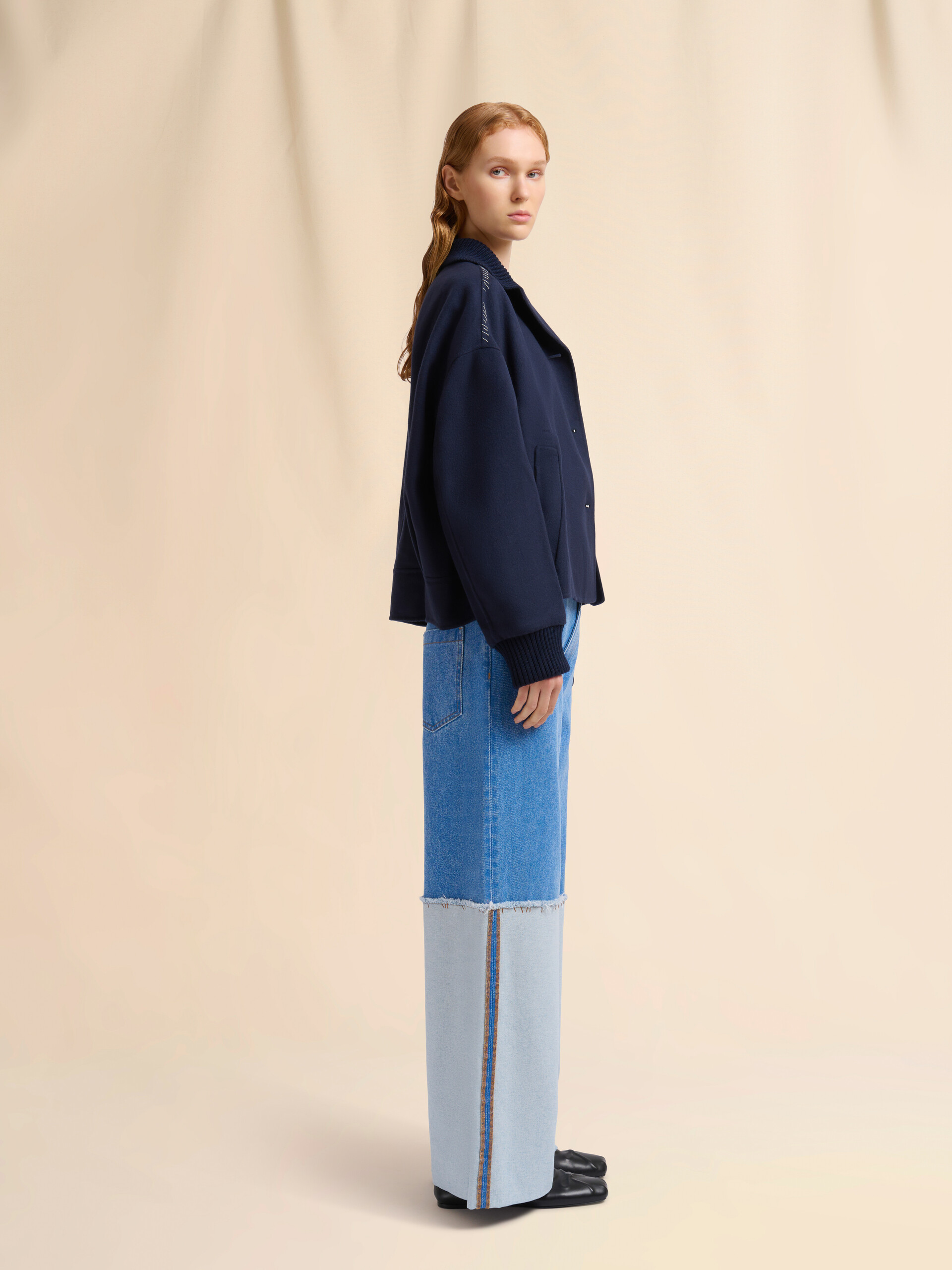 Dunkelblaue Jacke aus Wolle und Kaschmir mit Strickabschlüssen - Jacken - Image 1