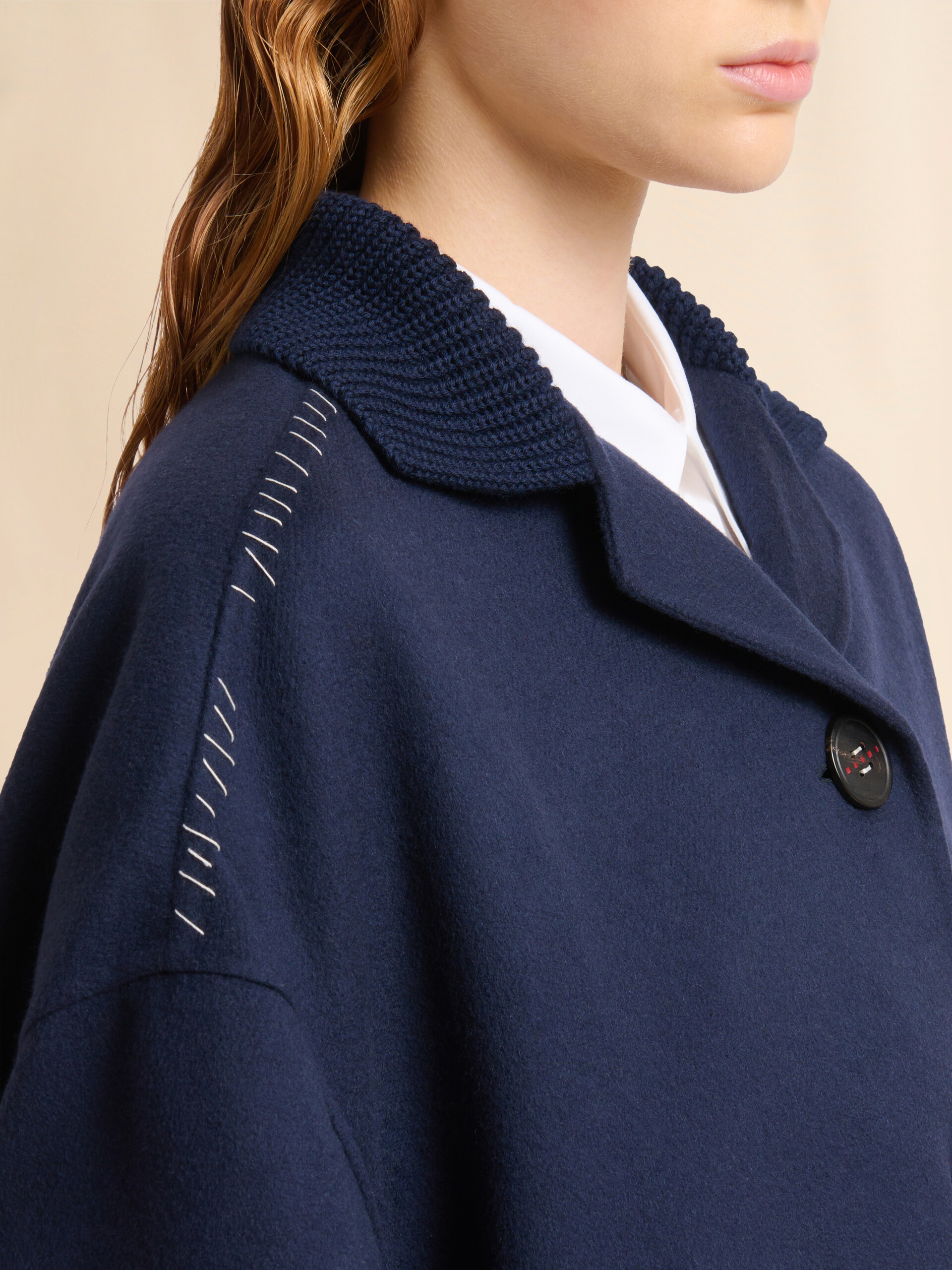 Dunkelblaue Jacke aus Wolle und Kaschmir mit Strickabschlüssen - Jacken - Image 4