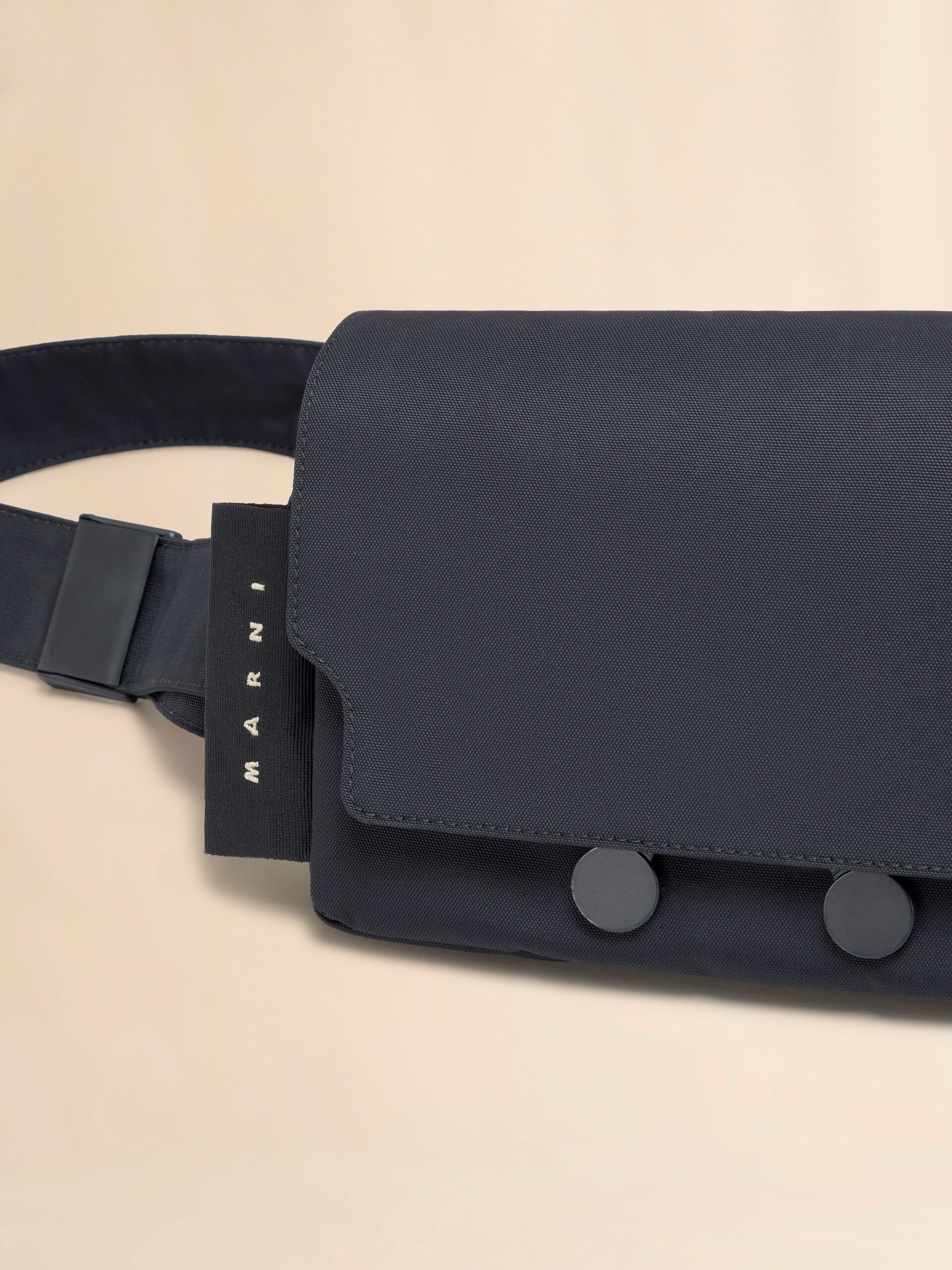 Cityscape belt bag, waterproof and highly durable. Front flap with satin-finish magnetic closure and engraved Marni lettering. Flat external pocket on the back. Adjustable belt and main zipped compartment. Large label with Marni logo.