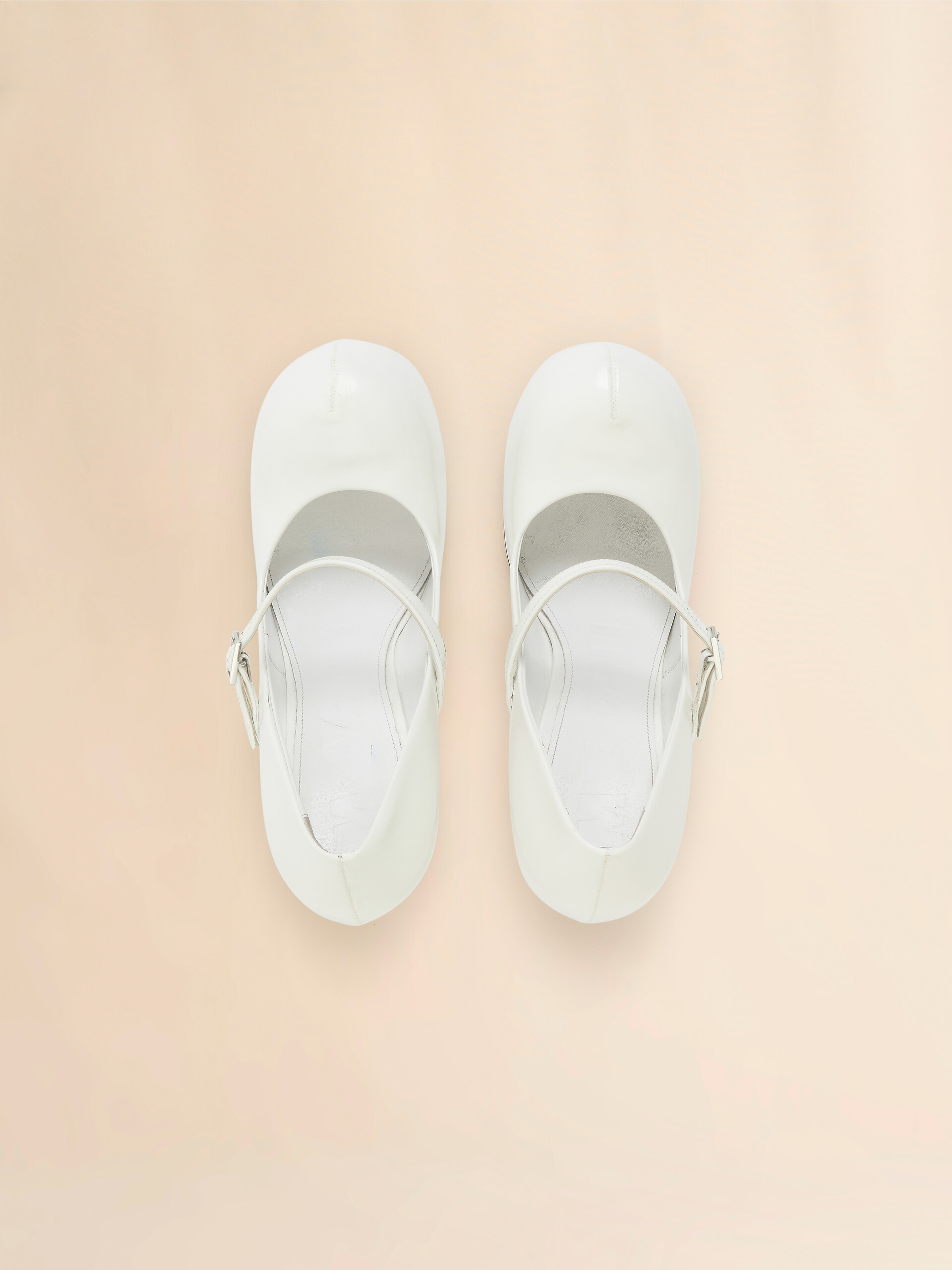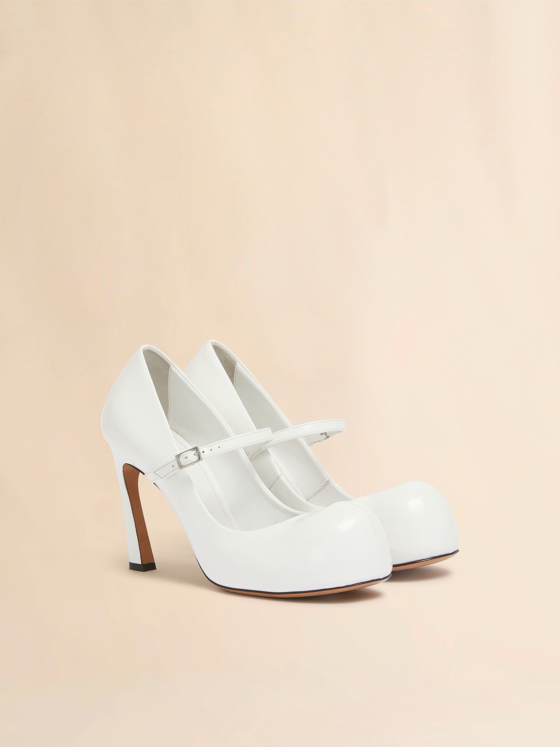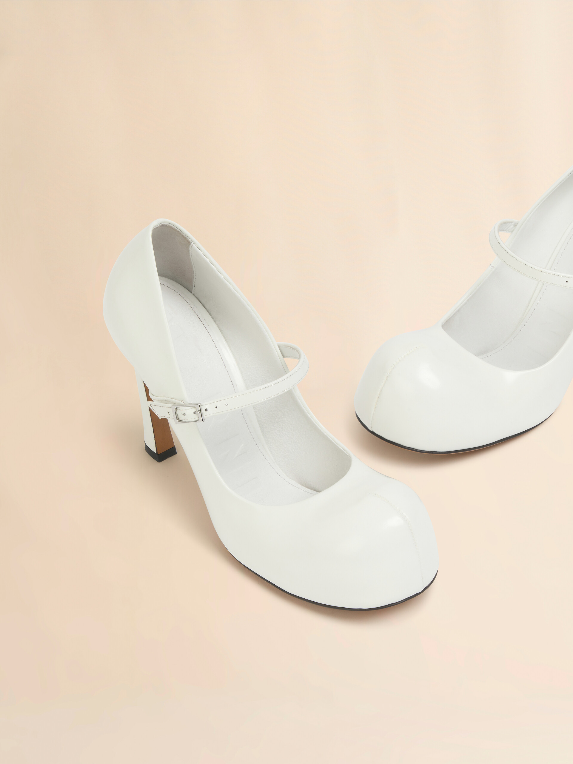 Mary Jane pump made from polished calfskin leather. Exaggerated silhouette with Marni's signature bubble toe. Buckle strap. Leather sole and soft insole with Marni logo. Made in Italy