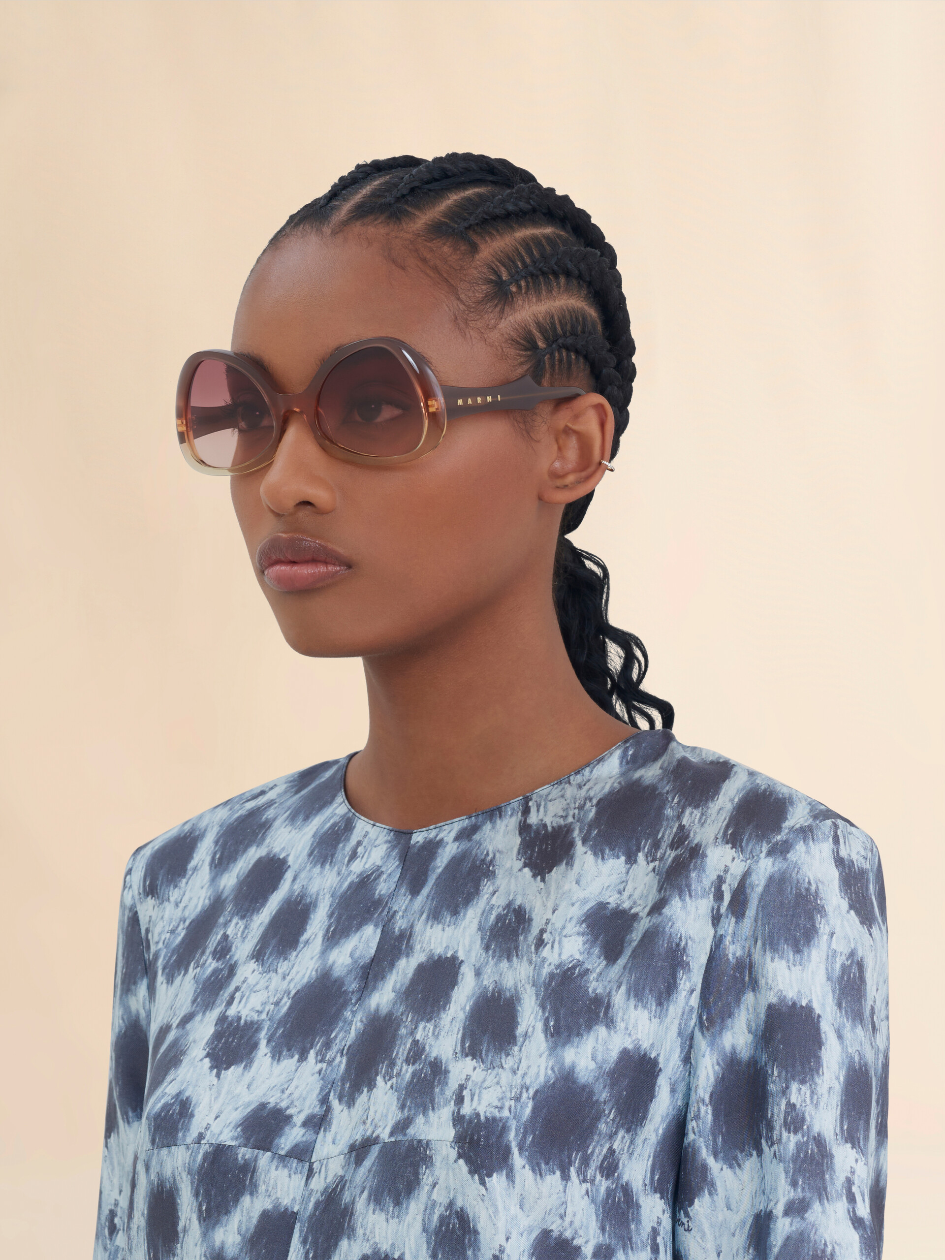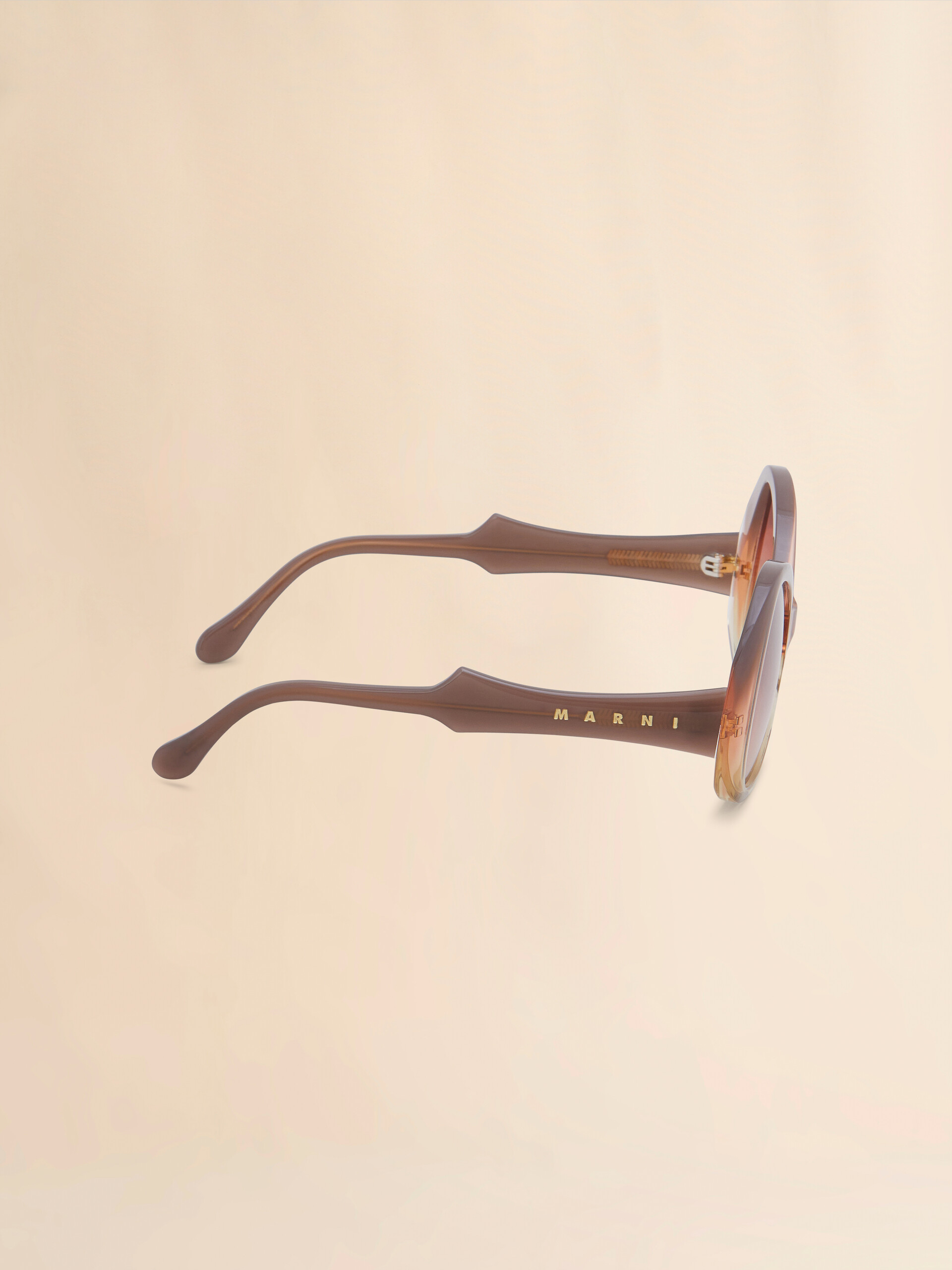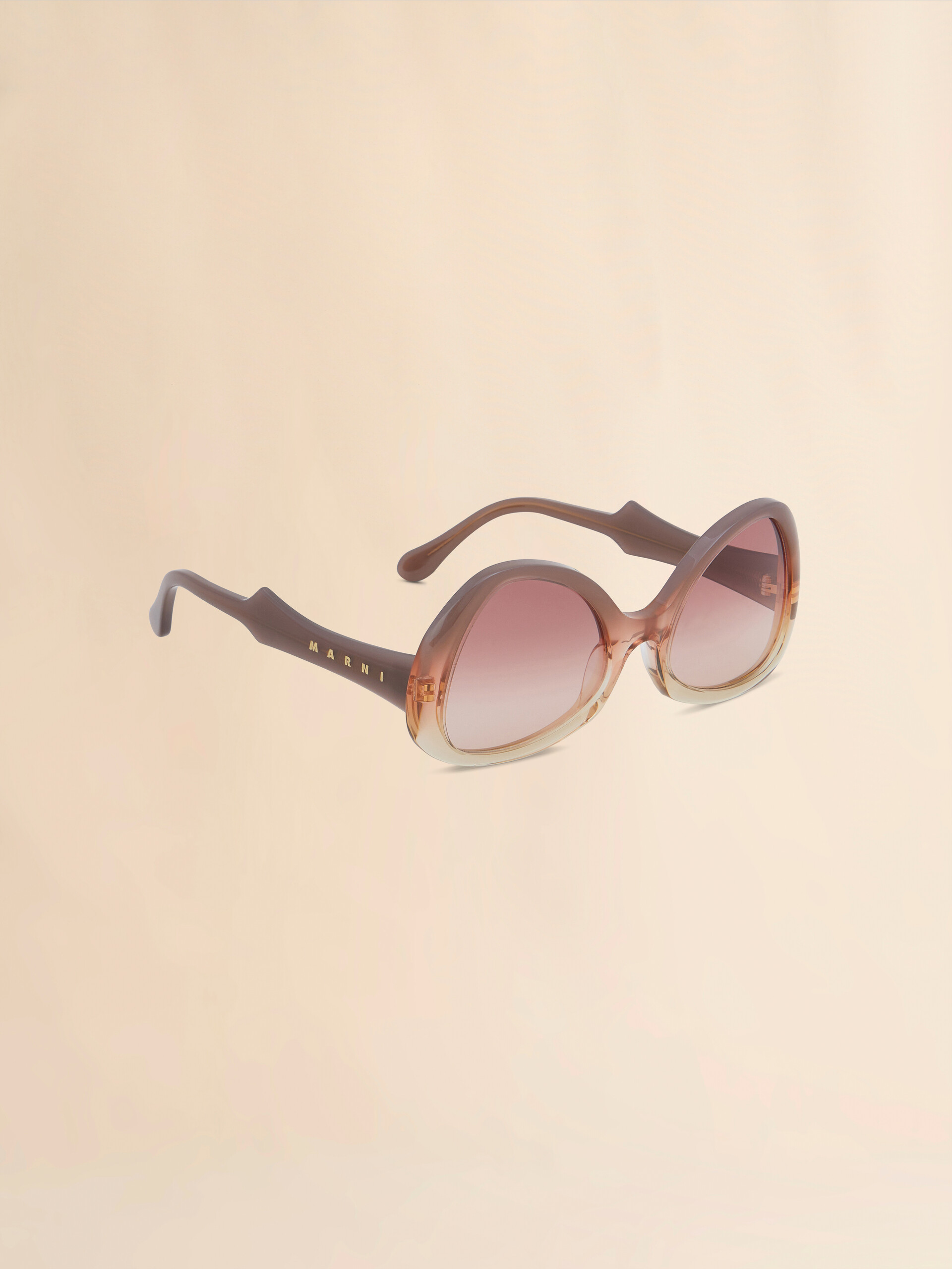 Anu Ohia sunglasses featuring a striking bold acetate frame and oversized lenses. The sinuous design is completed by sculptured temples featuring the iconic Marni logo. Made in Italy