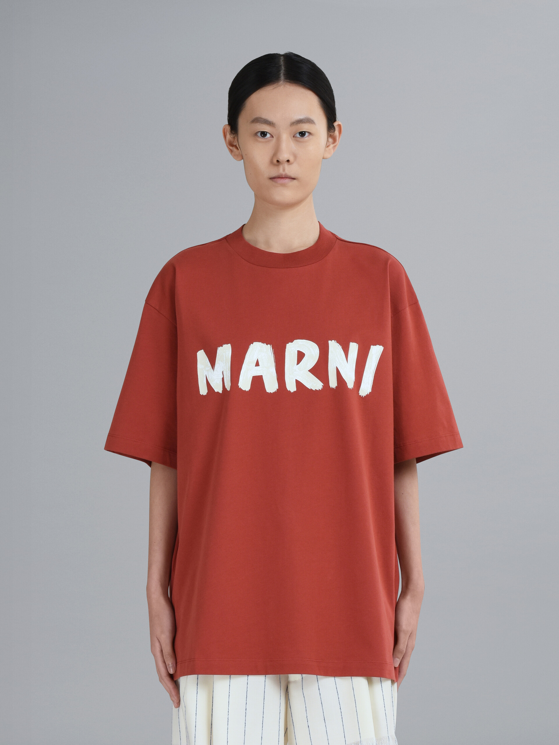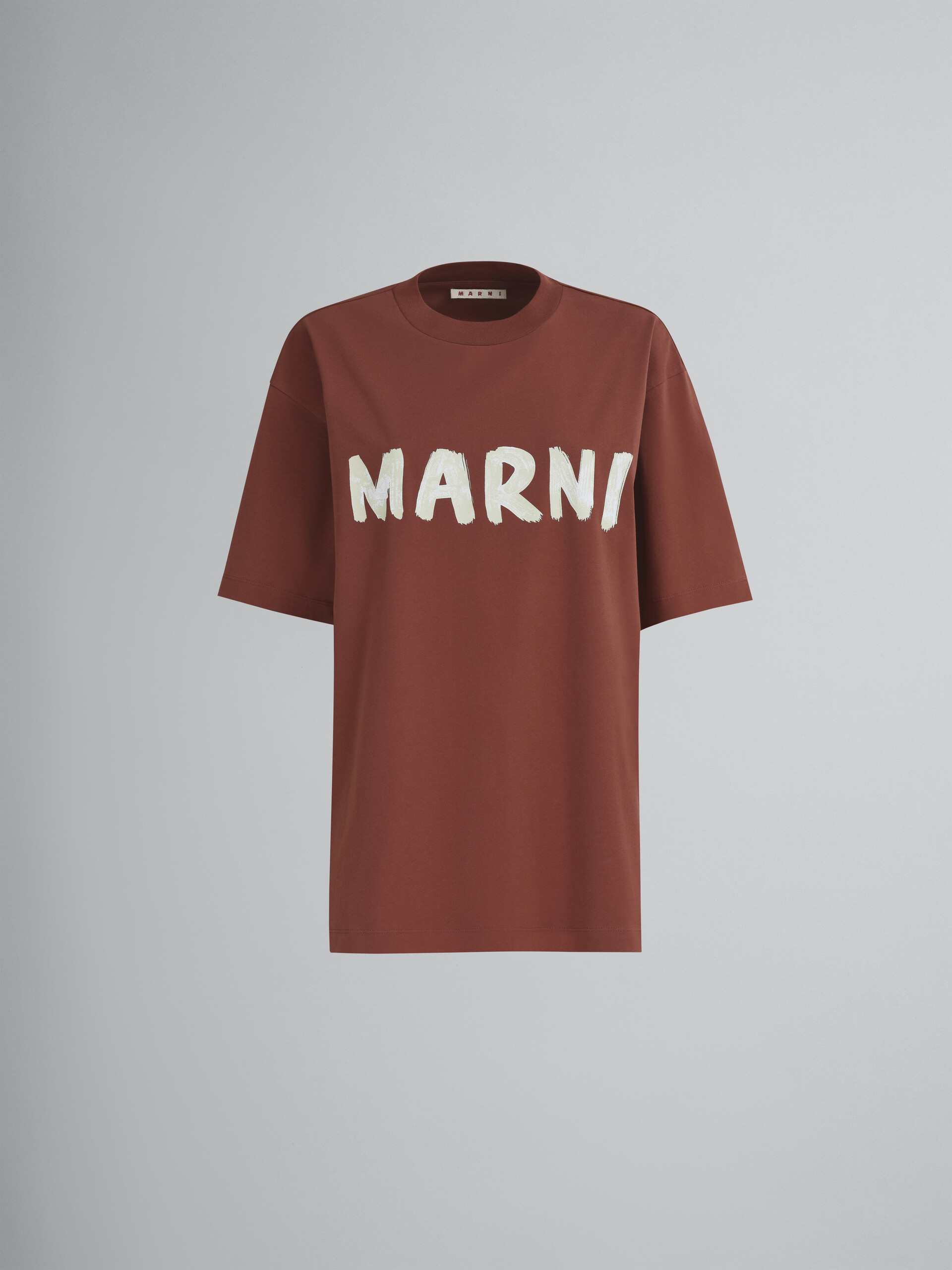 Short-sleeved crew-neck T-shirt made from organic cotton jersey. Boxy fit with short sleeves. Maxi brushstroke Marni logo on the chest.