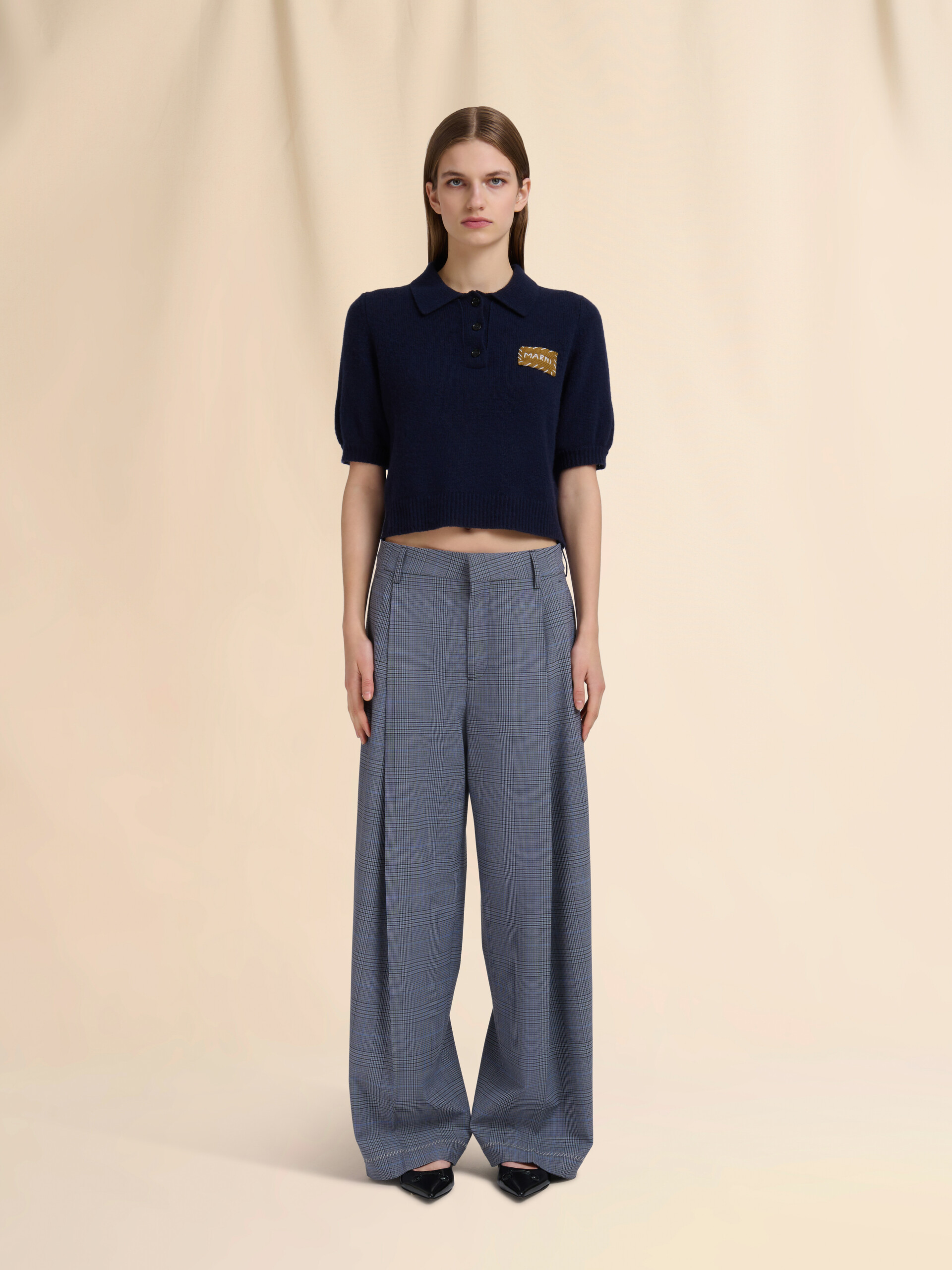 Blue wool trousers with Prince of Wales check - Pants - Image 1