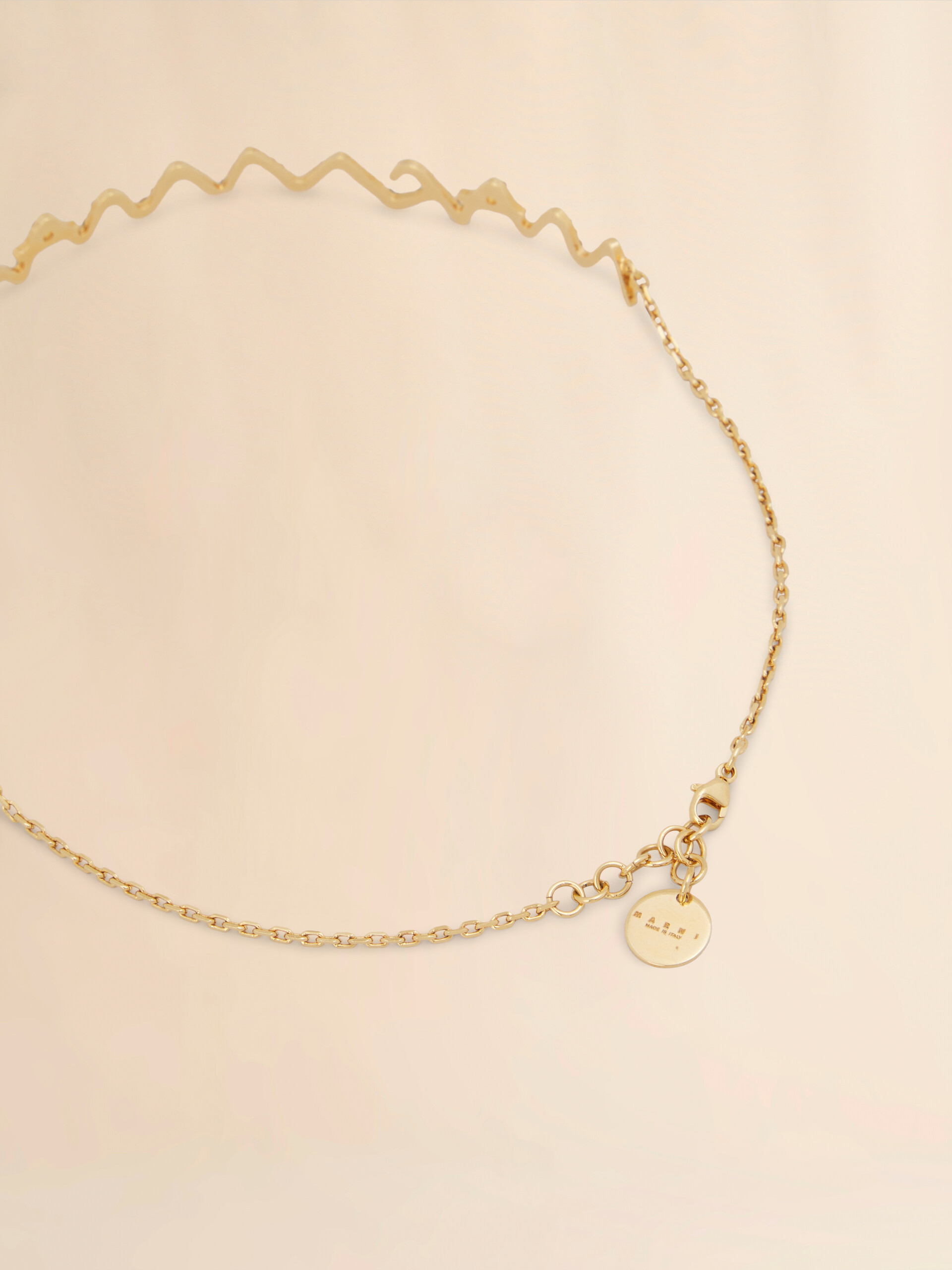 Choker necklace in gold-tone metal. Sculpted detail in the shape of the distinctive Marni Symbol logo with crystal pavé. Adjustable lobster clasp closure. Made in Italy