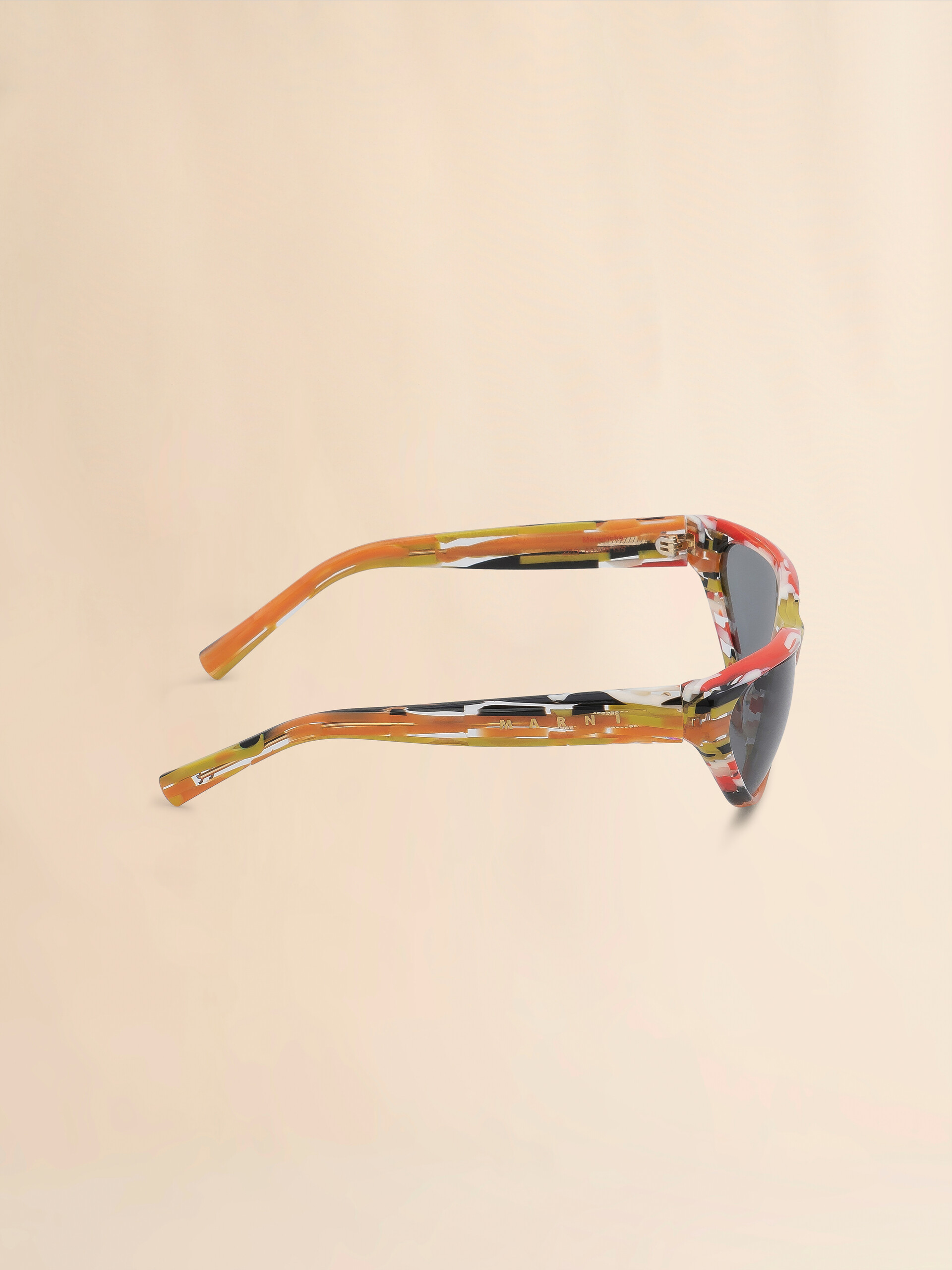 Mavericks sunglasses, crafted from acetate with a natural-inspired patterned finish. Narrow cateye silhouette. Made in Italy