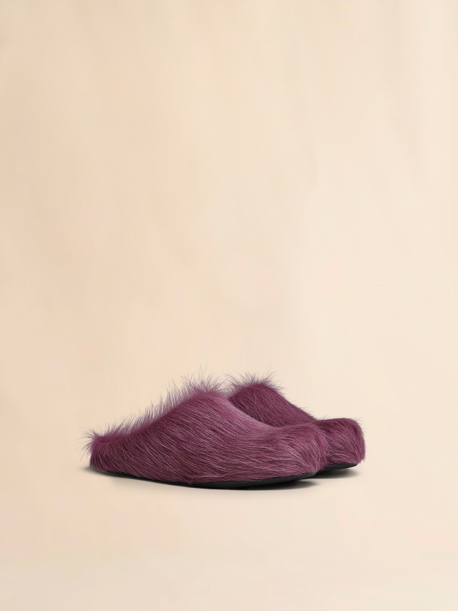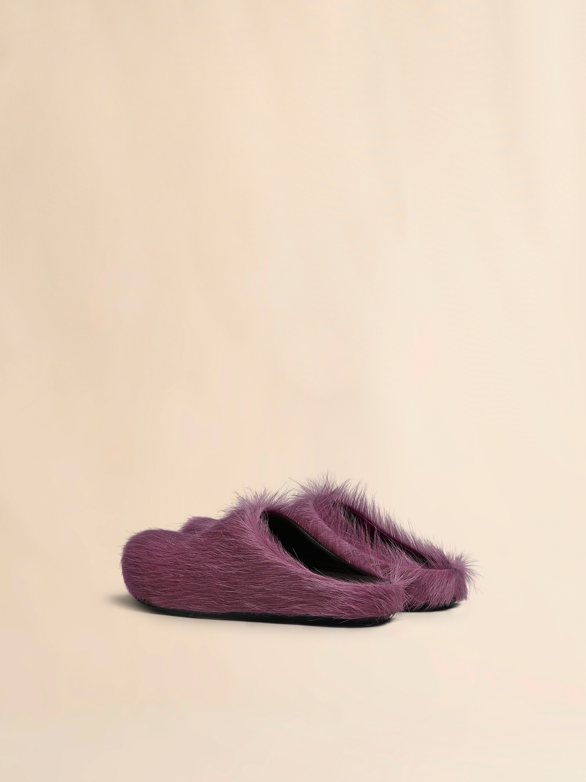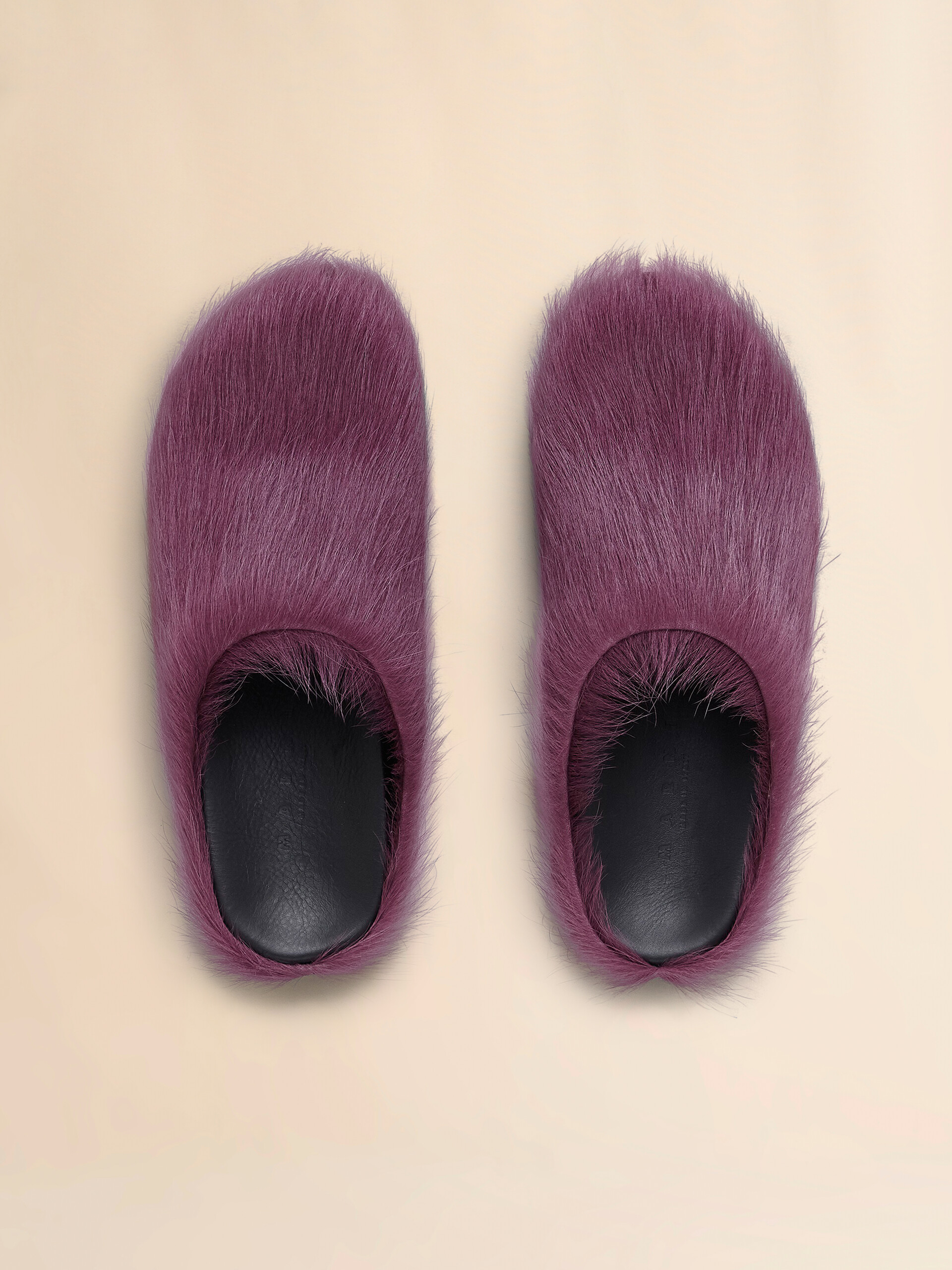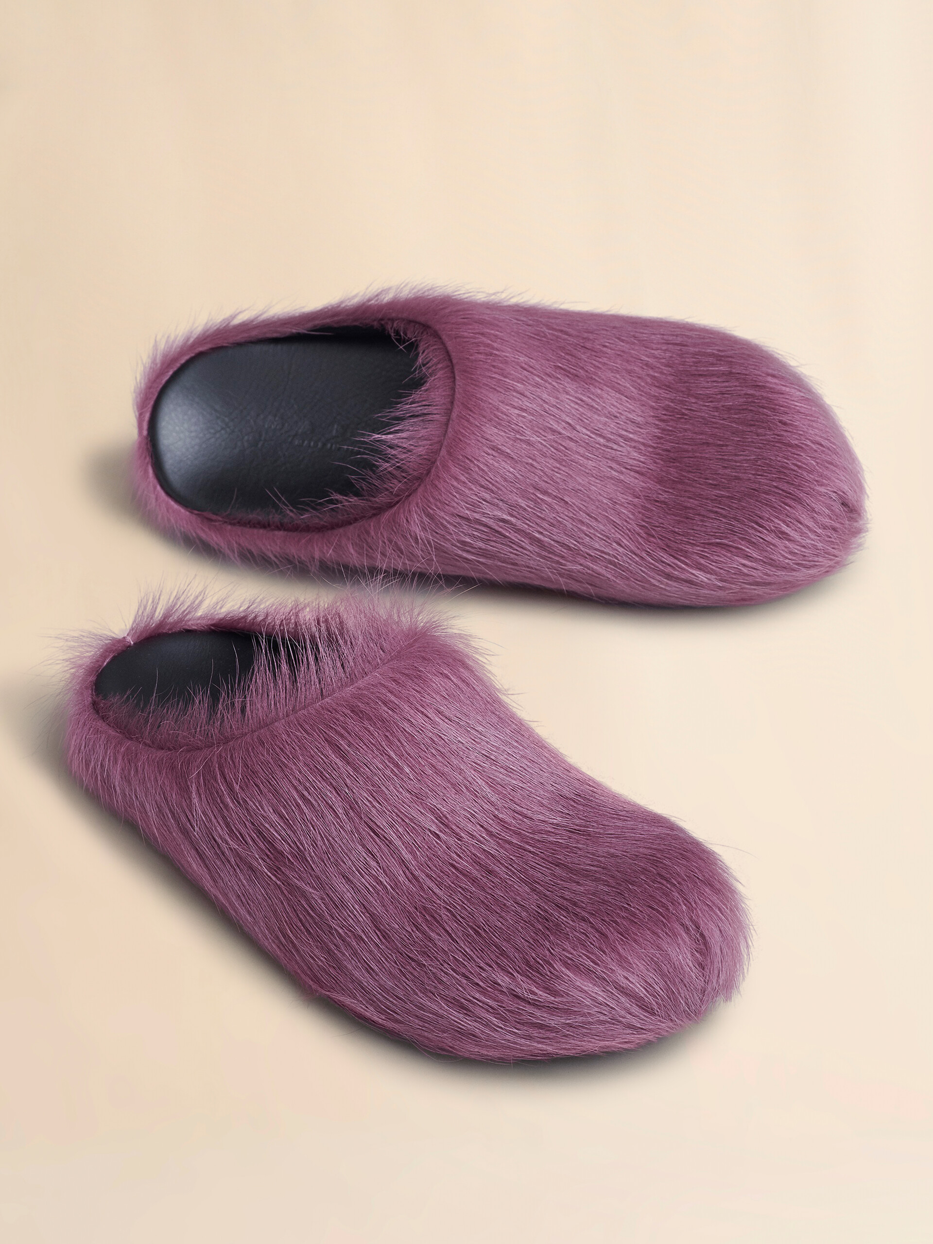 Fussbett sabot in long-haired calfskin. Leather anatomic insole. Ribbed rubber sole. Made in Italy