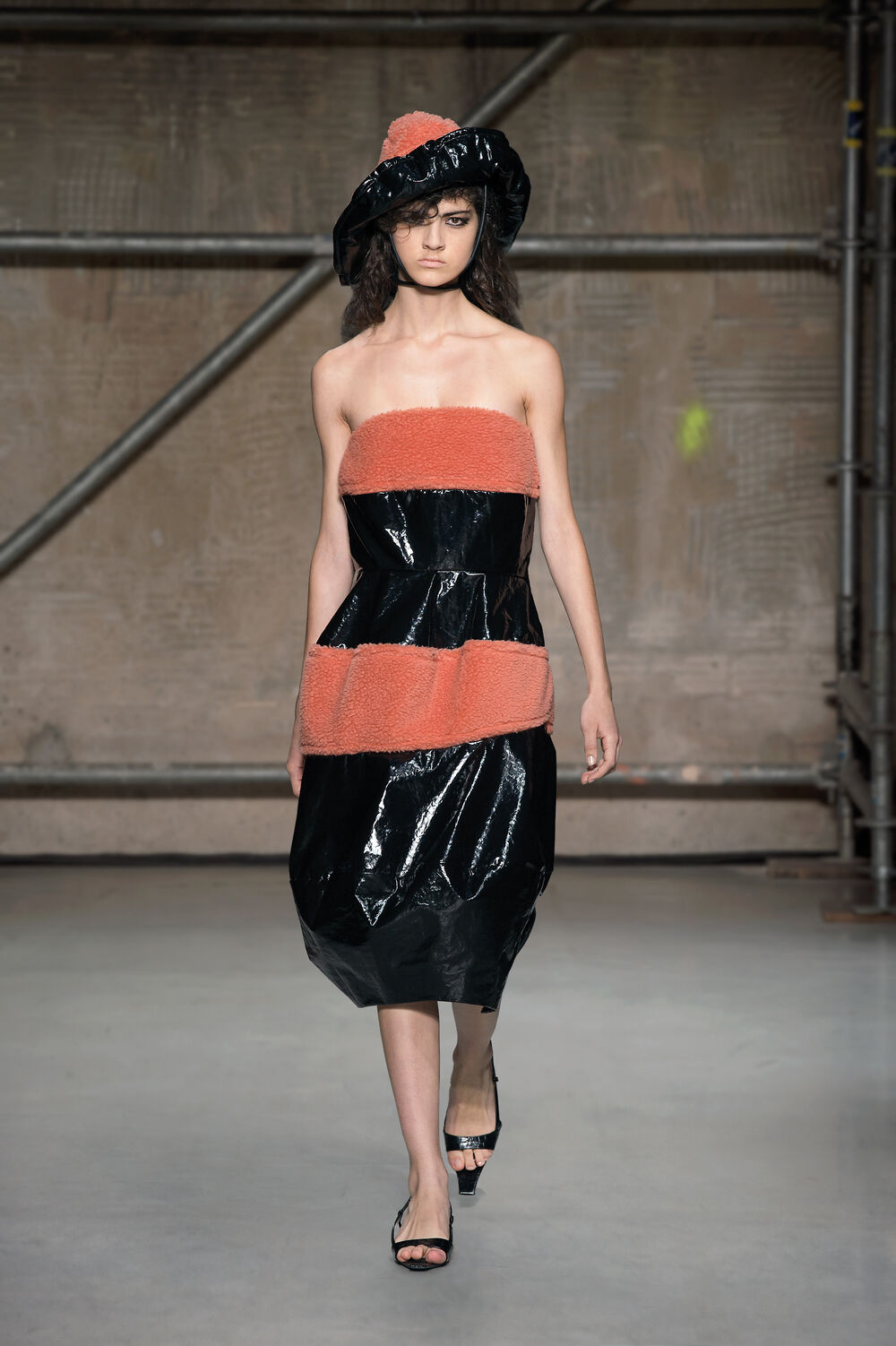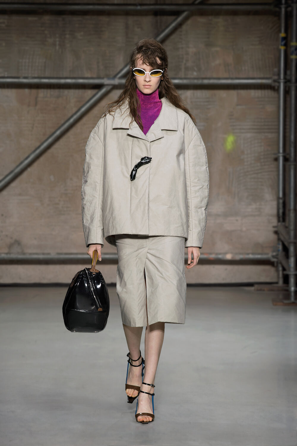 The debut collection of Marni Creative Director Francesco Risso explores womanhood in the act of discovering an individual reality. Balloon shapes elevate the silhouette and provide a sense of protection.