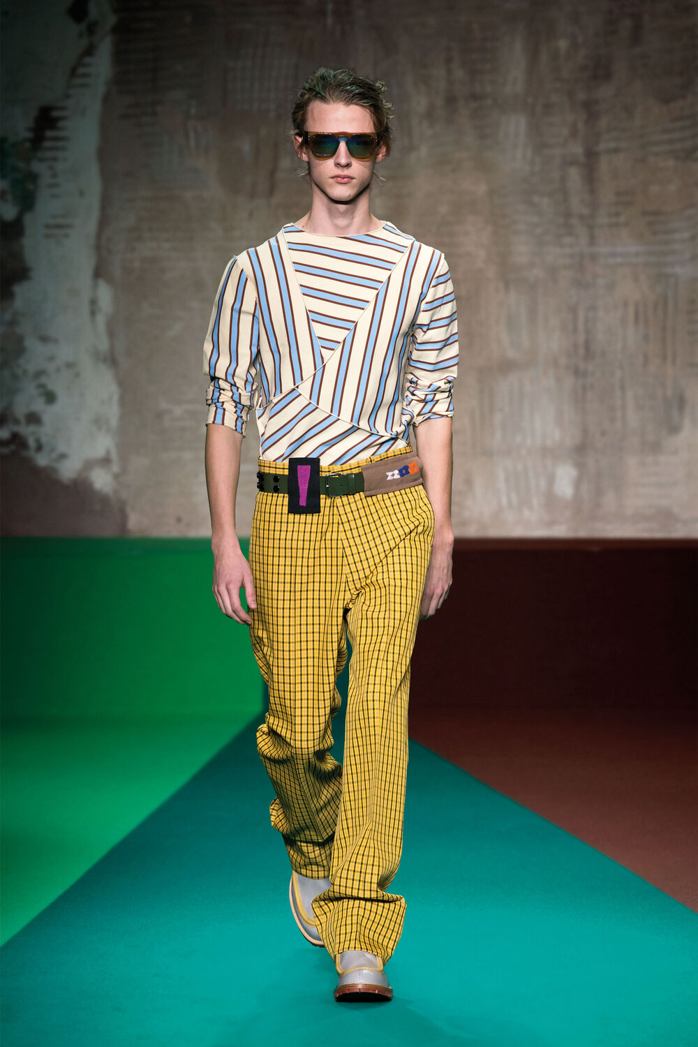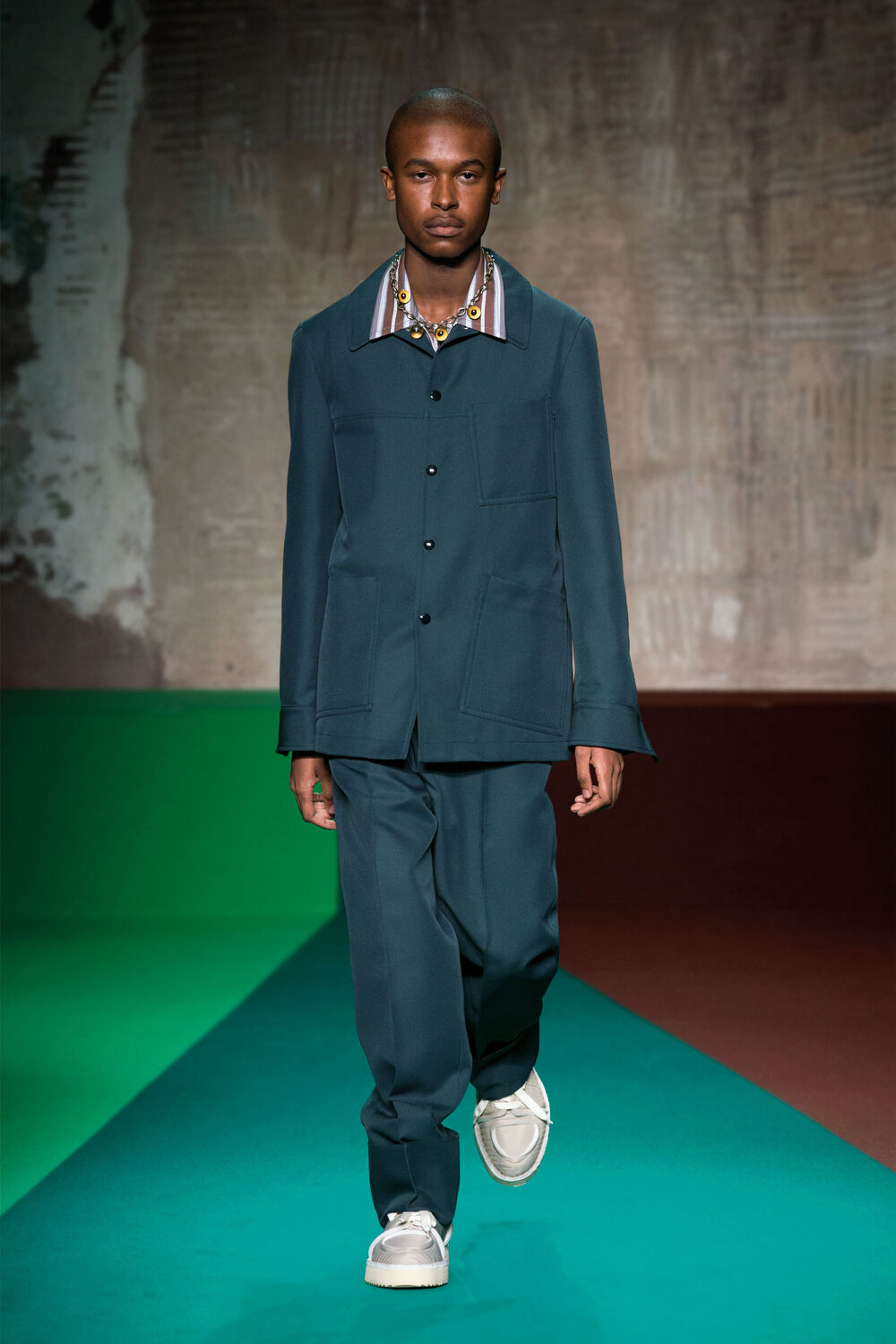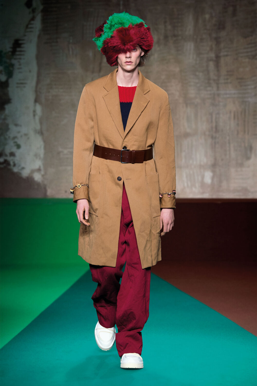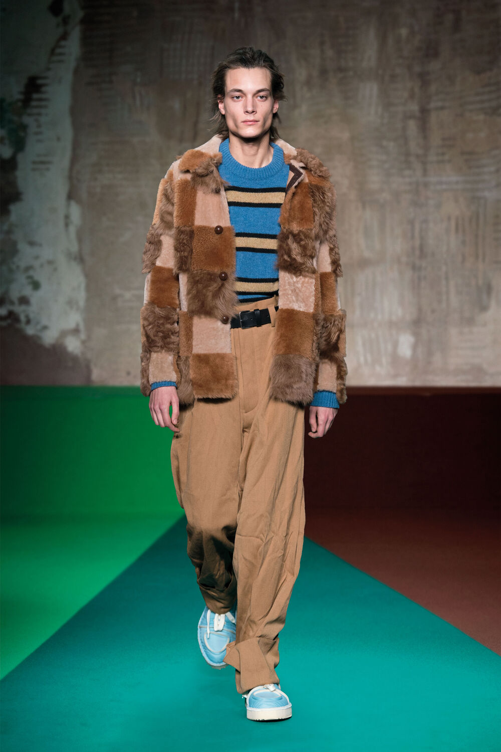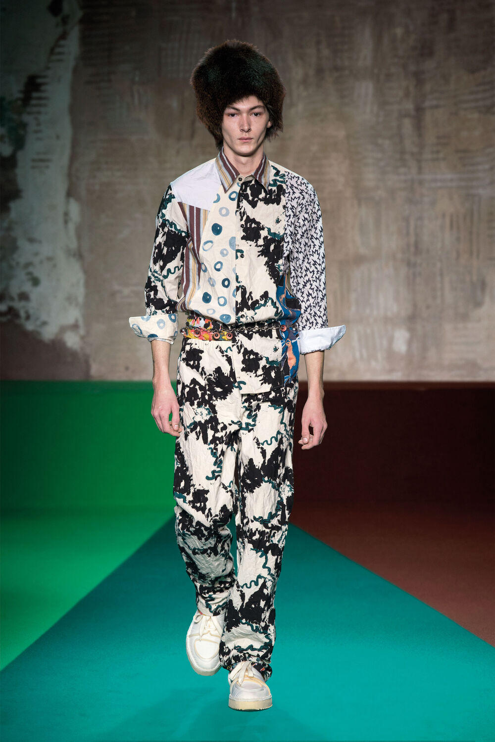 Marni Men’s Fall/Winter 2017 collection is an intersection of multiple realities, where individuals are celebrated in their singularity. Through a spinning vision, primeval elements surface.