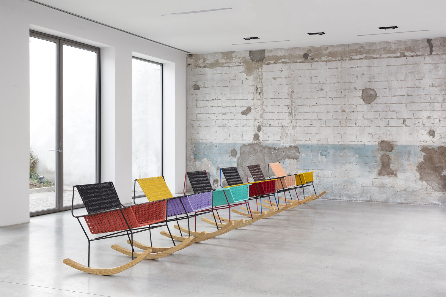 Aprile 2014: Un’edizione limitata di animali in metallo e PVC dai colori vivaci invade uno spazio aperto industriale, accanto a sedie, tavoli e altri arredi decorativi, realizzati a mano da artigiane colombiane.