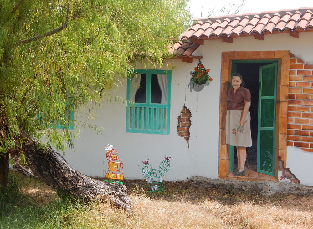 Galline in cartapesta e perline, realizzate a mano da un gruppo di donne colombiane di Villanueva, nel dipartimento di Casanare, riempiono lo spazio, accompagnando gli ospiti in un viaggio nel cuore di un’accogliente comunità rurale.