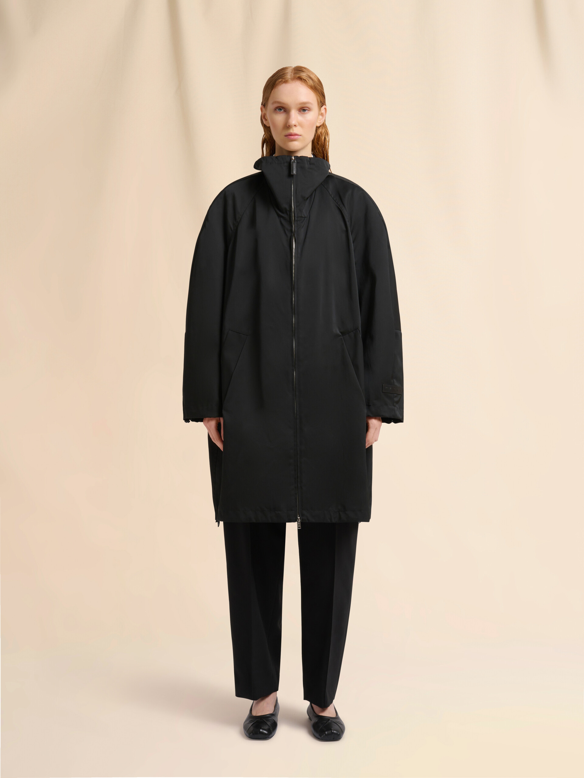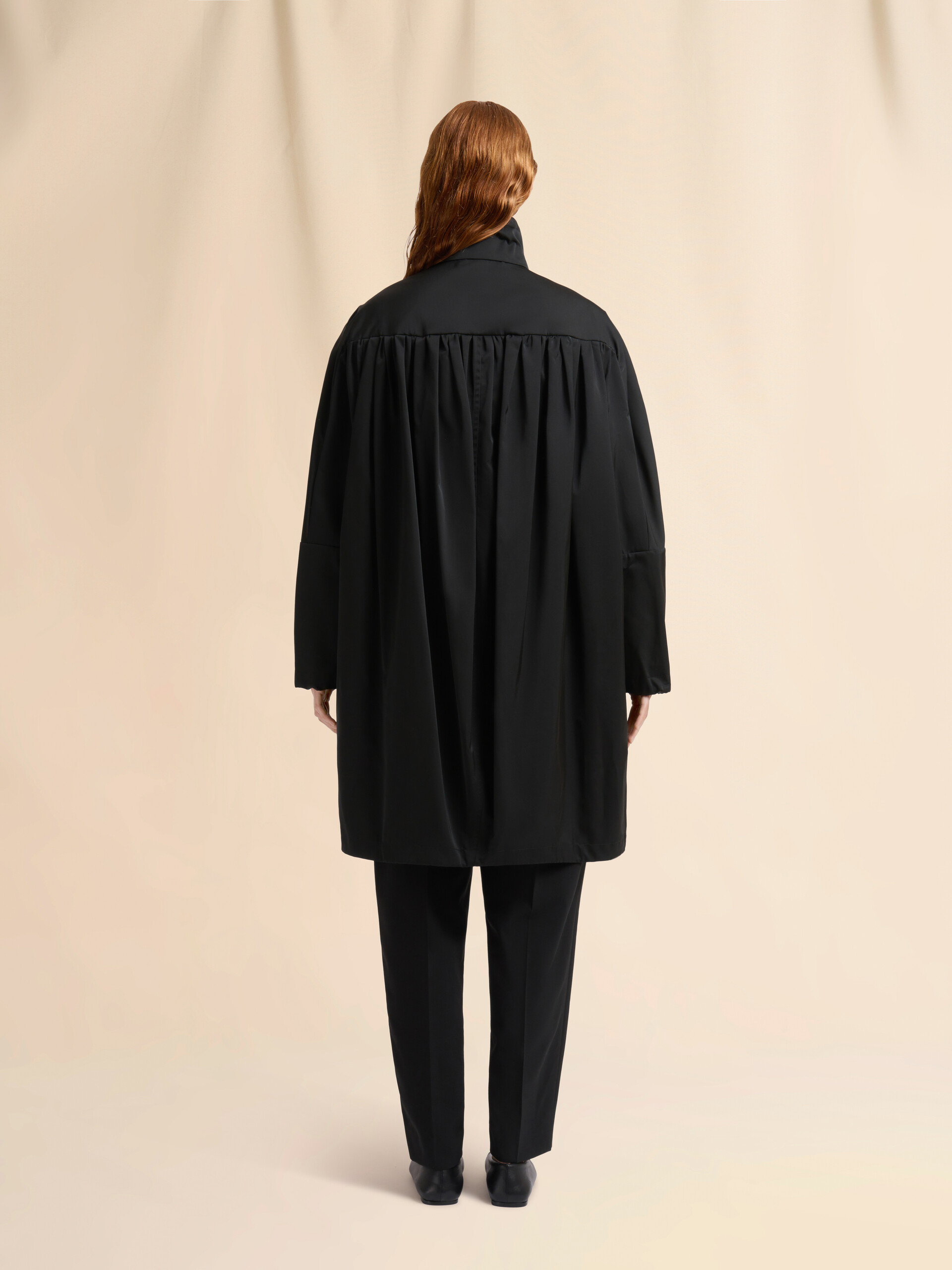Parka in taffetà nero con schiena arricciata - Giacche - Image 1