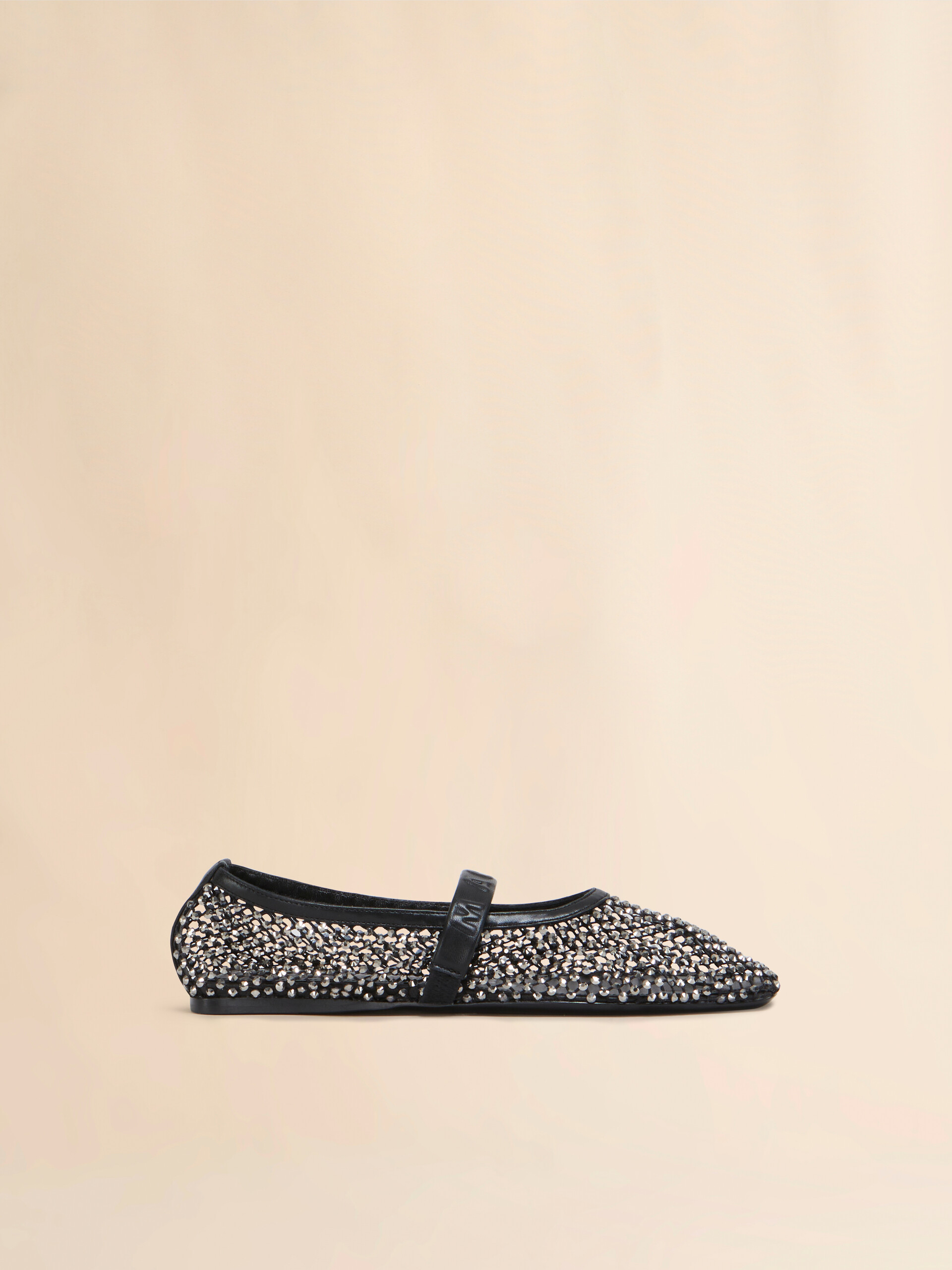 Ballerina Mary Jane in rete nera con cristalli - Mocassini - Image 1