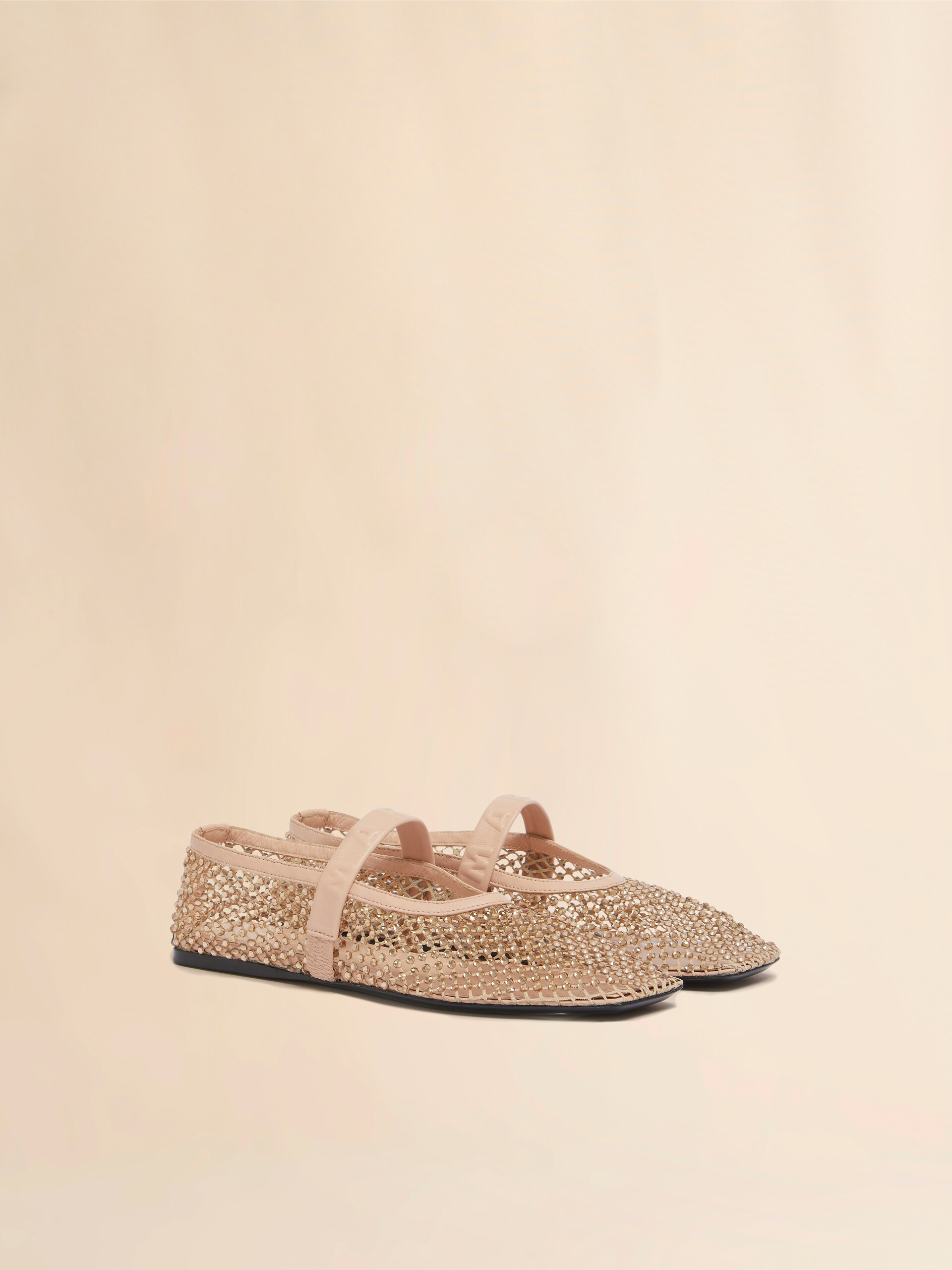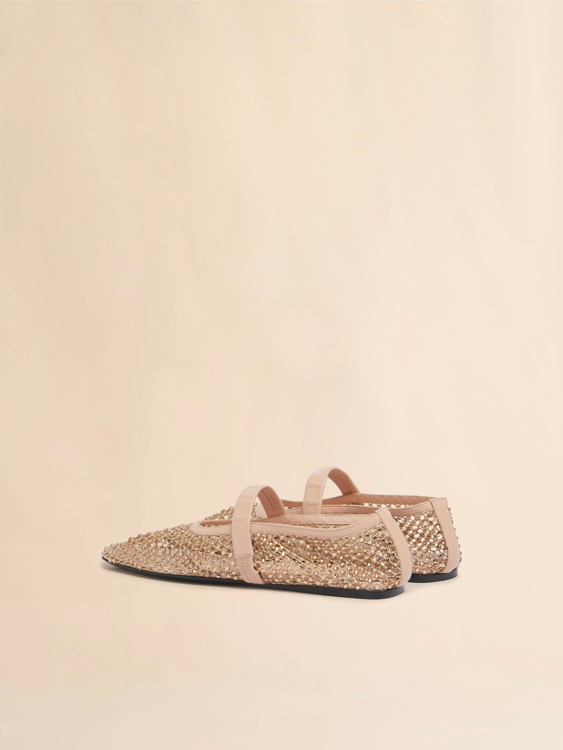 Ballerina Mary Jane in rete rosa chiaro con cristalli