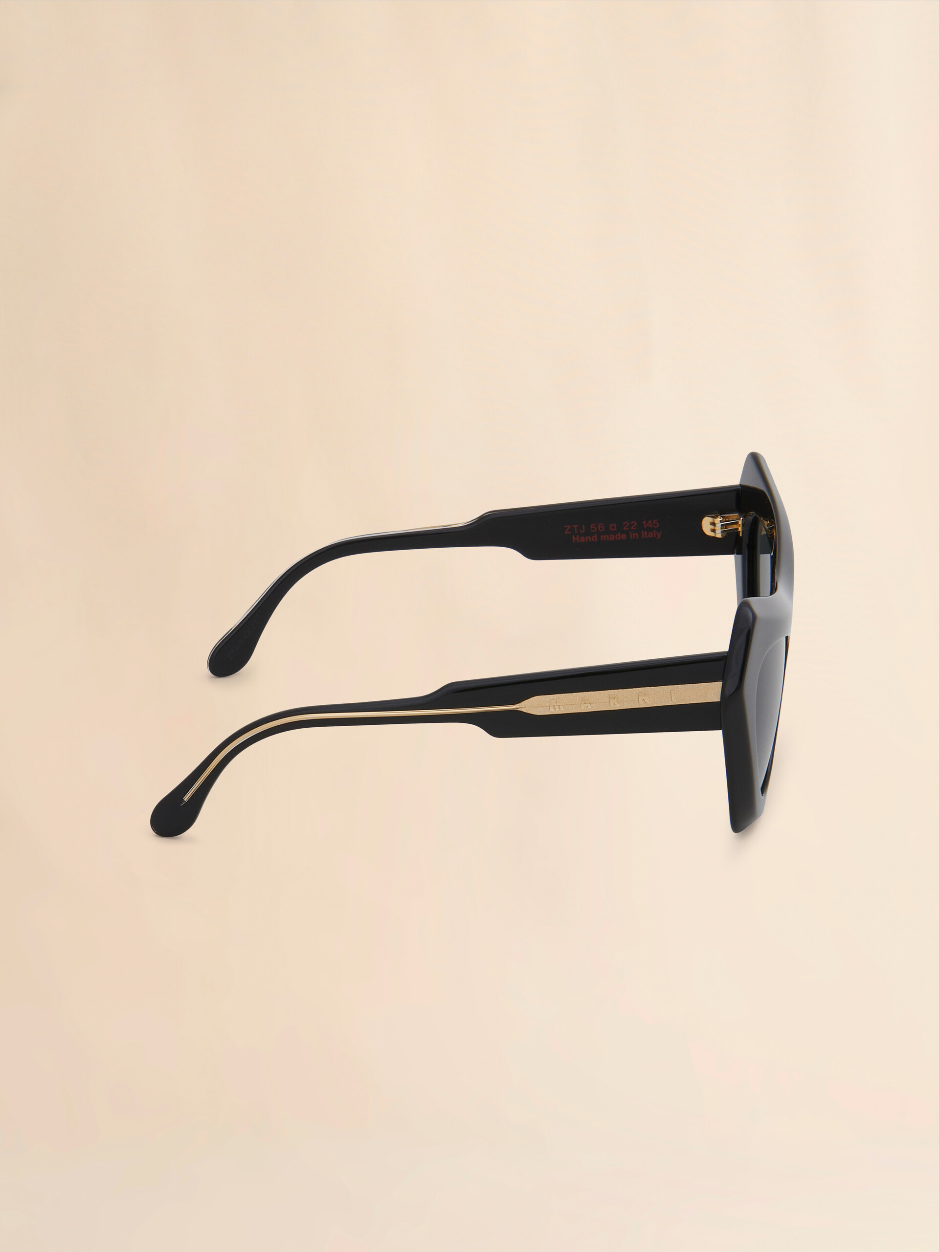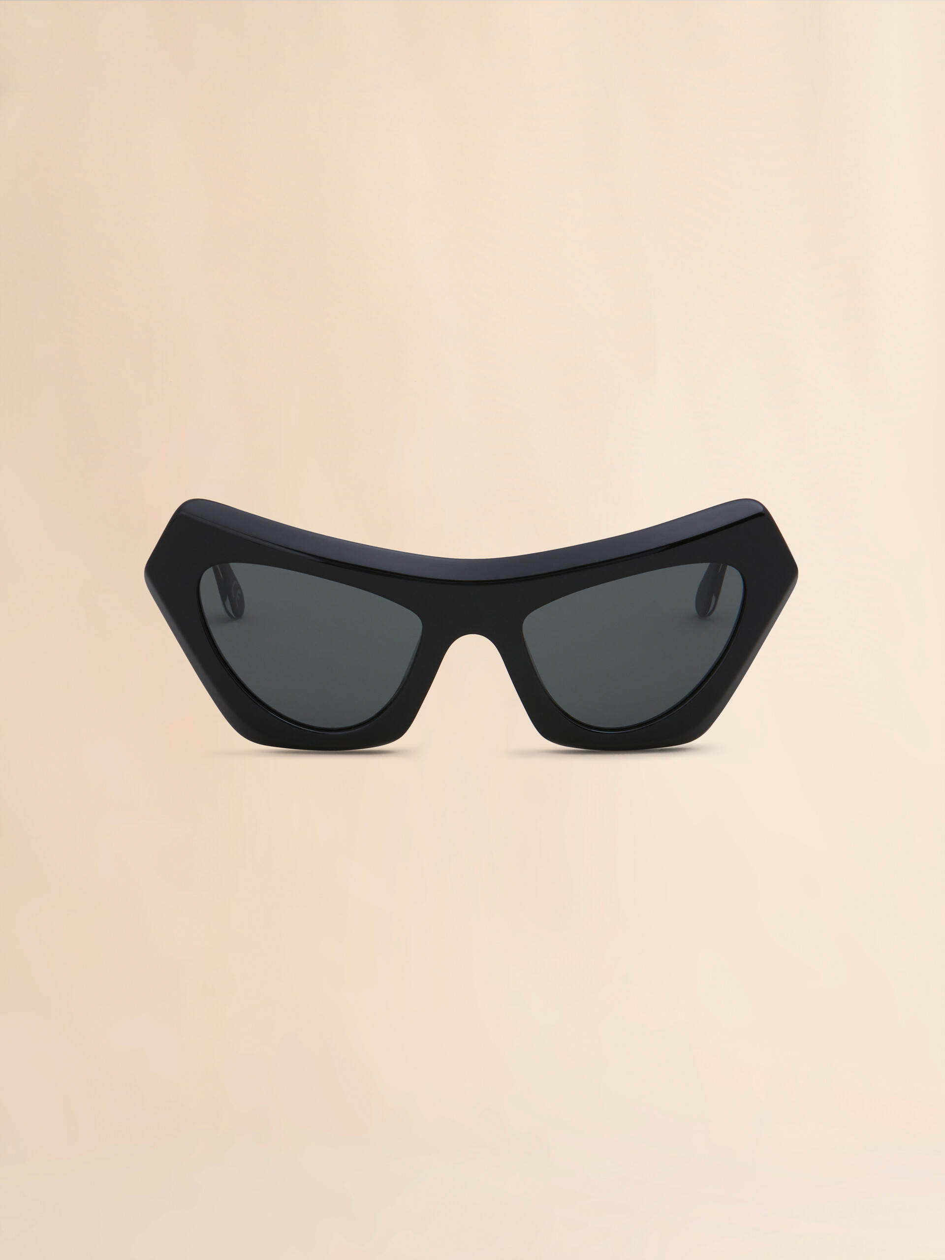 Occhiali da sole Devil's Pool con montatura squadrata in acetato lucido nero. Aste con anima in metallo e logo Marni. Lenti di colore nero. Made in Italy
