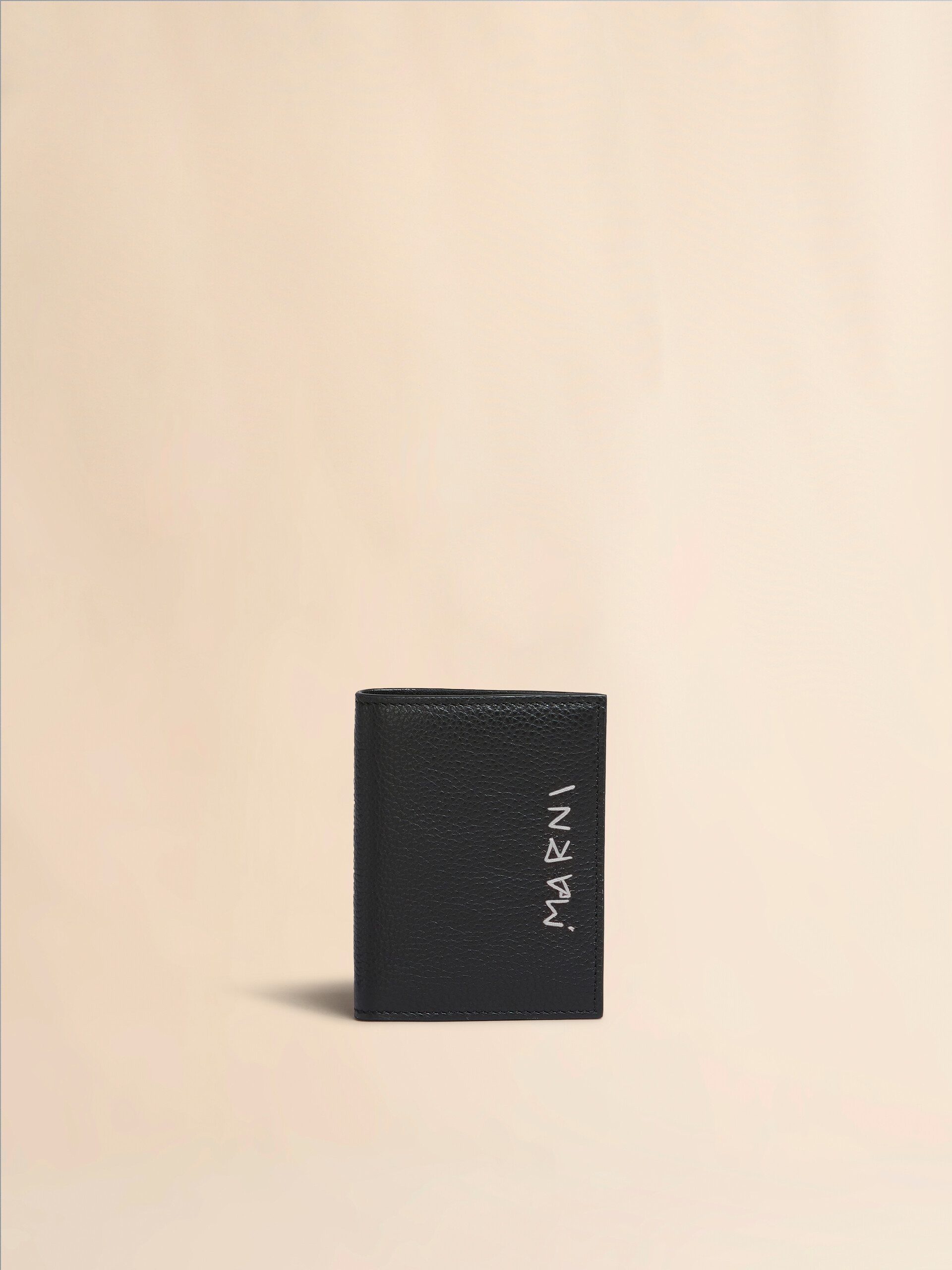 portafoglio bi-fold in pelle nera con ricamo Marni Mending