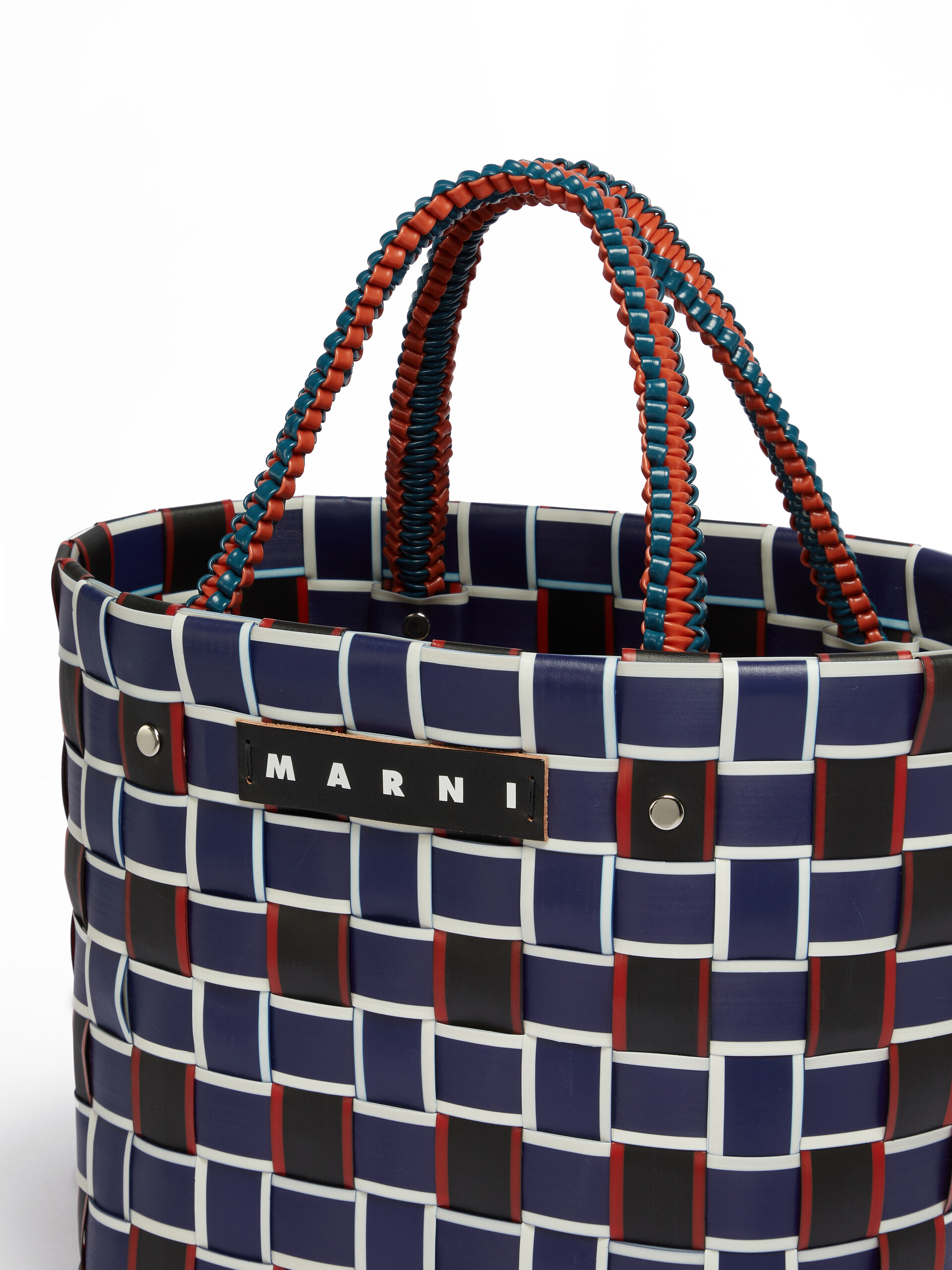 MARNI MARKET TAPE BASKETバッグ。スクビドゥー織ツインハンドル、コントラストを効かせたマルチカラーウォーブンコットン製ショッピングバッグ。ブラックレザーのブランドネーム入りタグ。ハンドメイドの製品は、多少の違いを伴うことがあります。