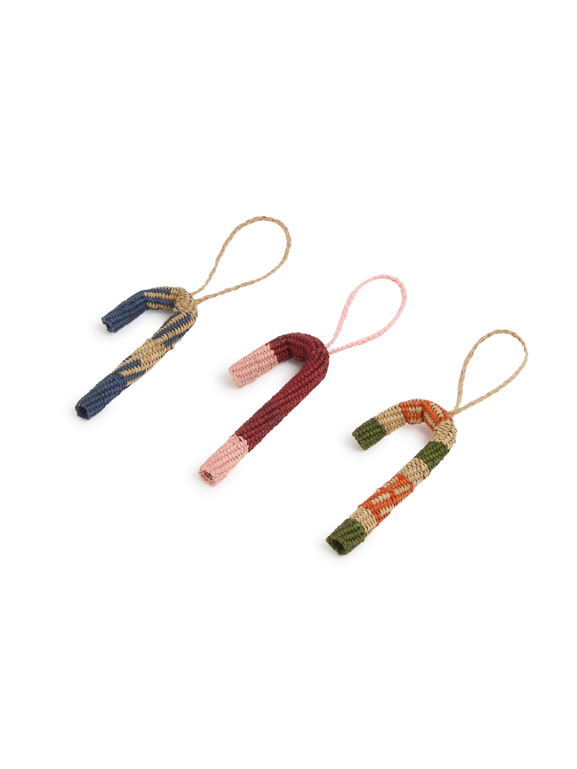 MARNI MARKET デコレーション。3つ組。マルチカラーのヤシ繊維より糸織り。キャンディケインデザイン。このアイテムはハンドメイドのため、画像とは若干異なる場合があります。