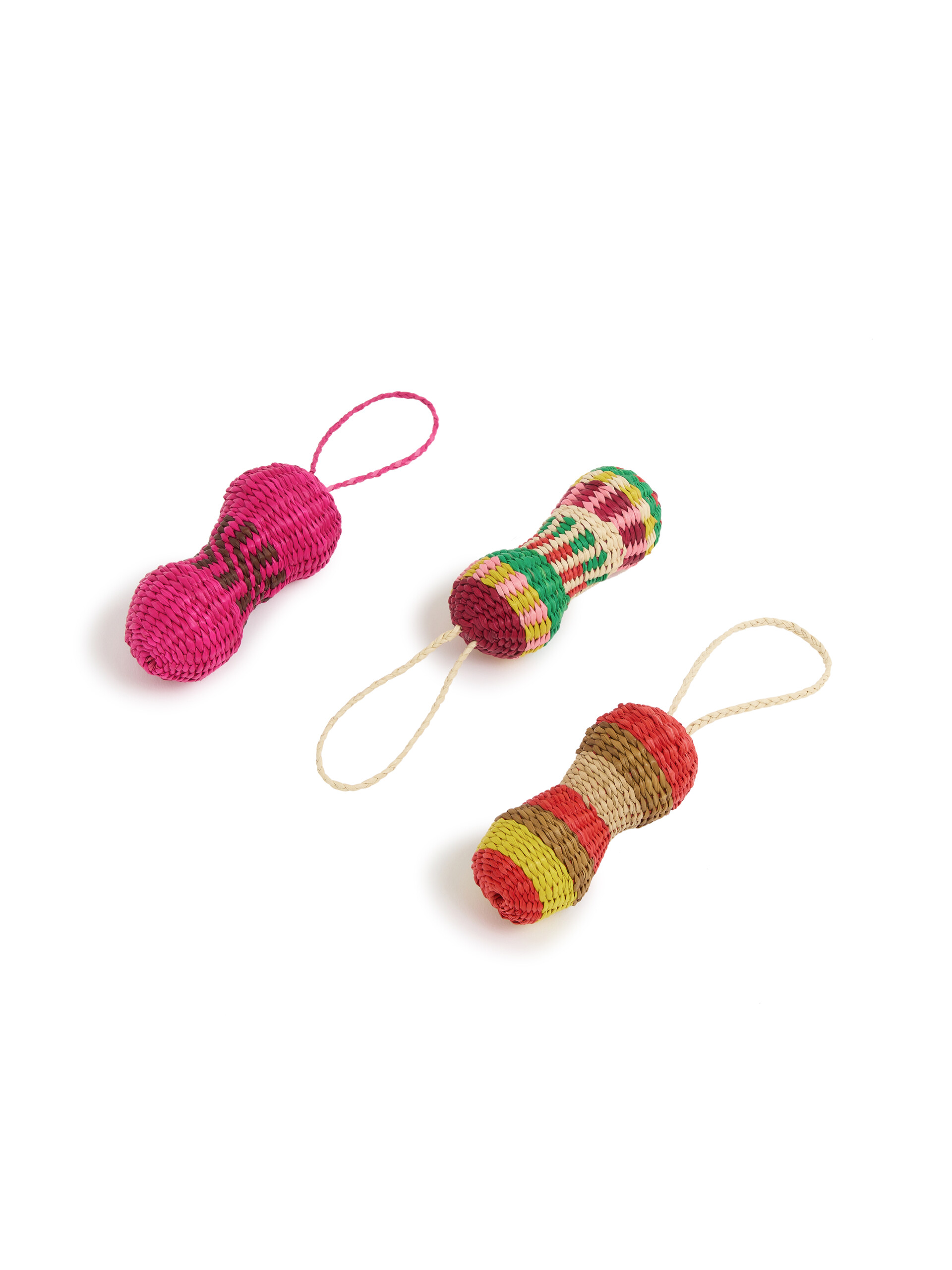 MARNI MARKET デコレーション。3つ組。マルチカラーのヤシ繊維より糸織り。ピーナッツシェイプ。このアイテムはハンドメイドのため、画像とは若干異なる場合があります。