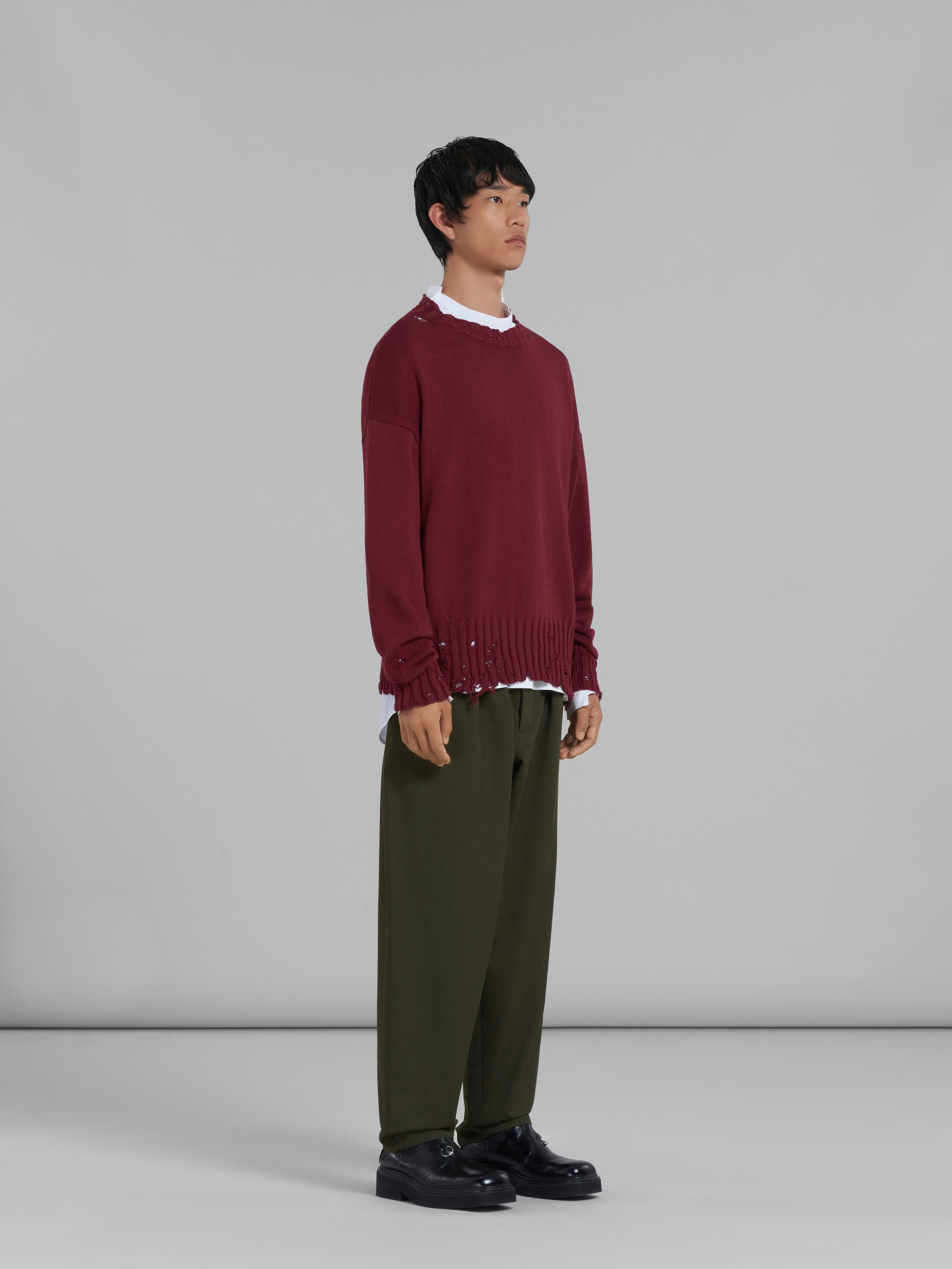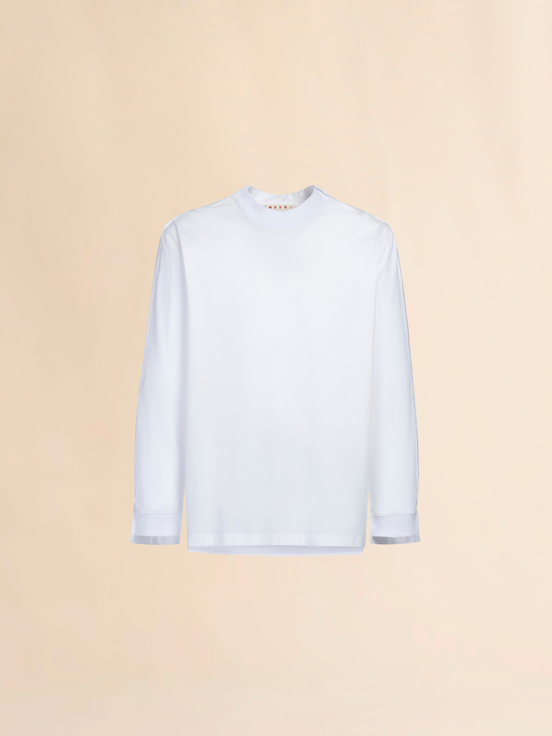 オーガニックコットンジャージー 長袖Tシャツ。リラックスフィット。モックネック。ボックスプリーツ。バックヨーク マルニパッチ。 Made in Italy