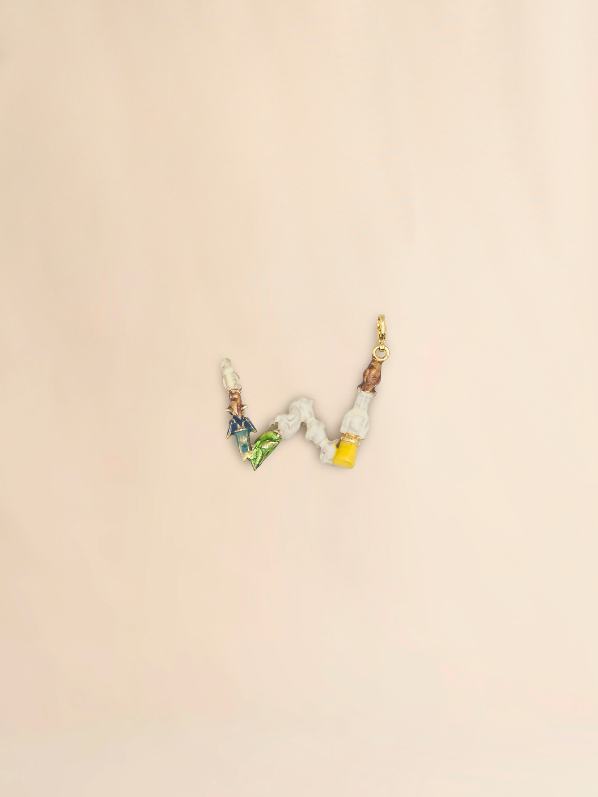 Marni의 스타일 언어에서 상징적인 역할을 하는 기호, 캐릭터, 동물로 구성된 "W" 레터 참. 섬세한 랍스터 클로저. 별도로 판매되는 두 가지 네크리스 옵션 제공. Made in Italy