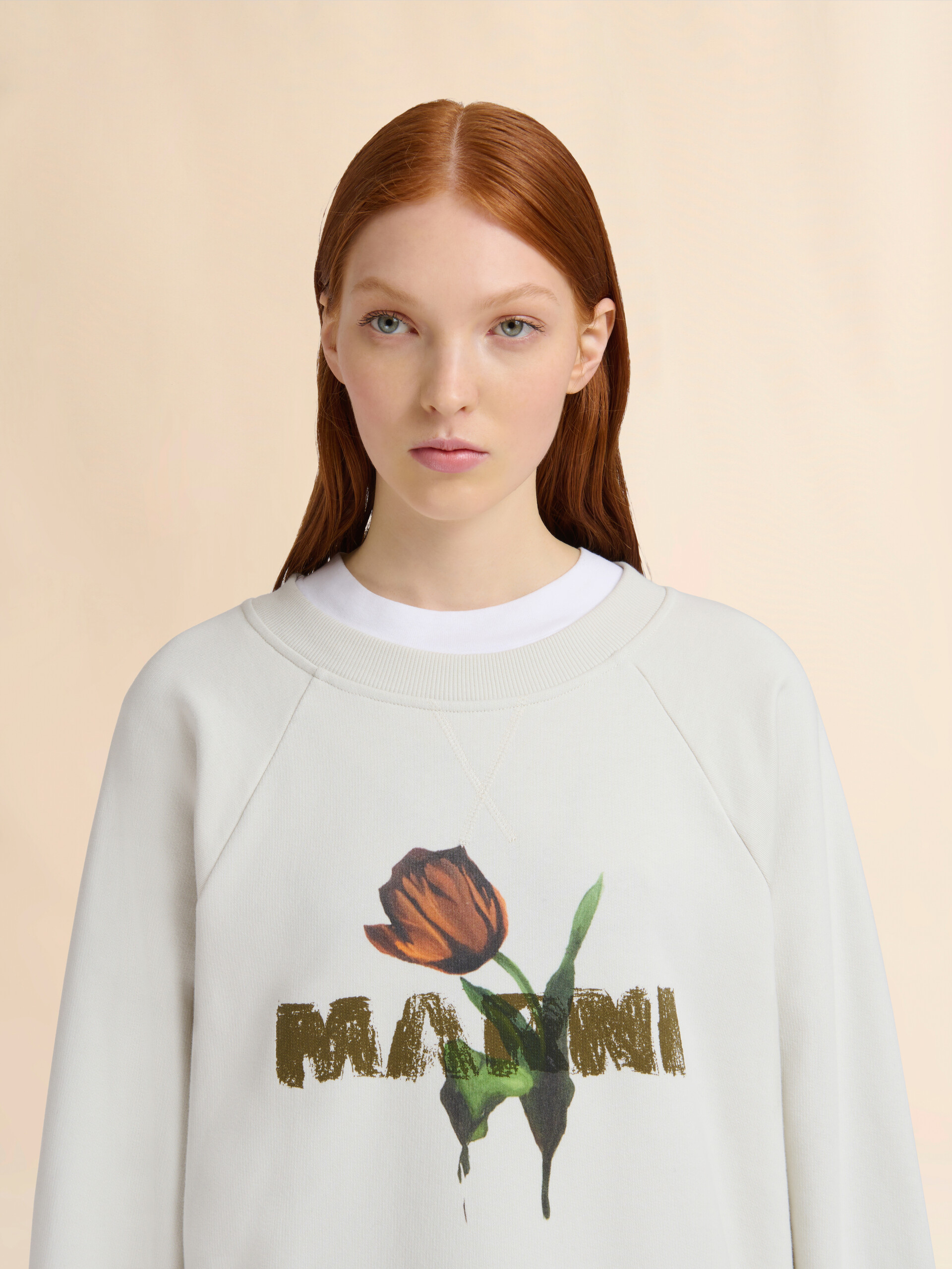 가슴 부분에 튤립 모티프와 Marni 로고가 프린트된 코튼 소재 스웻셔츠. 크루넥과 긴 래글런 소매로 구성한 레귤러 핏.
