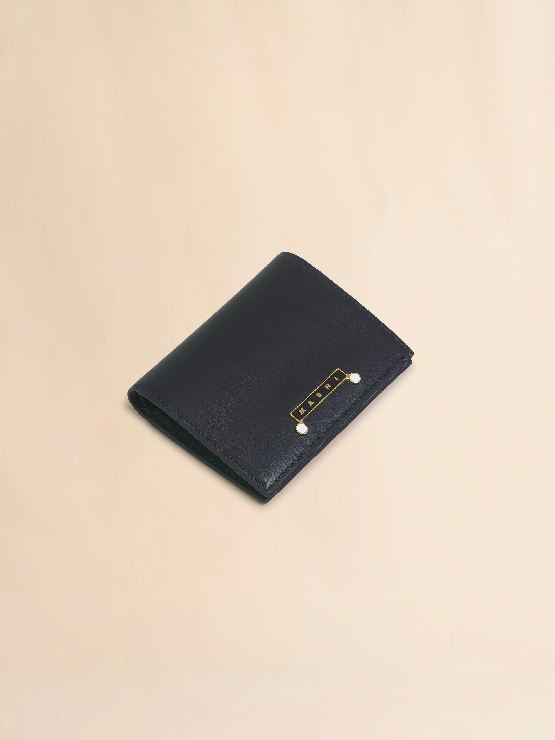 카프스킨 가죽 소재의 Envelope 2단 지갑. 상징적인 Marni Trunkaroo 클래스프에서 영감을 받은 에나멜 디테일. 숨겨진 스냅버튼 클로저. 동전 포켓, 지폐 수납공간, 카드 수납칸 4개. Made in Italy